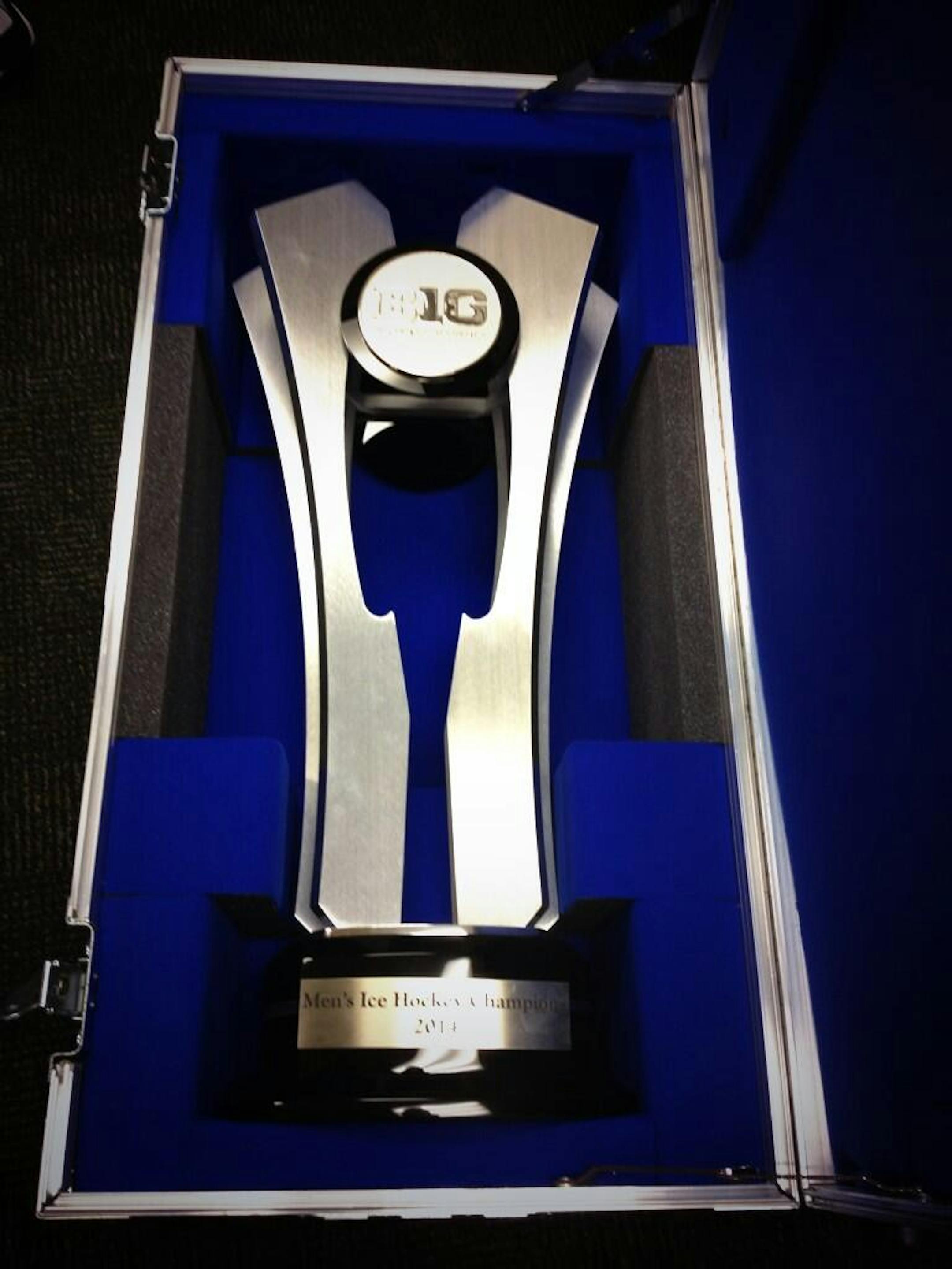 •The Big Ten showed off its hockey hardware via its Twitter account on Wednesday. The regular season conference champion and conference tournament champion will be awarded new trophies. The tournament hardware is a cup.