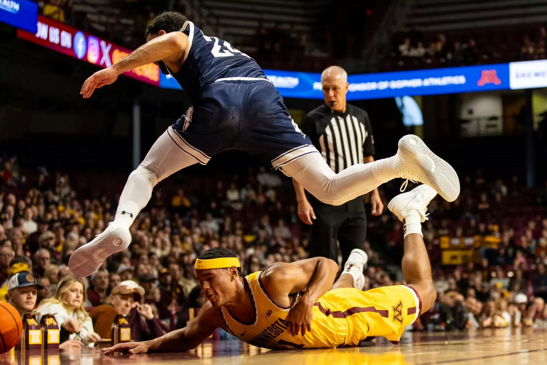 The Gophers were outscored 23-4 in the first half and trailed by as much as 14 points. They never regained the advantage until going on a 20-9 run in the second half.