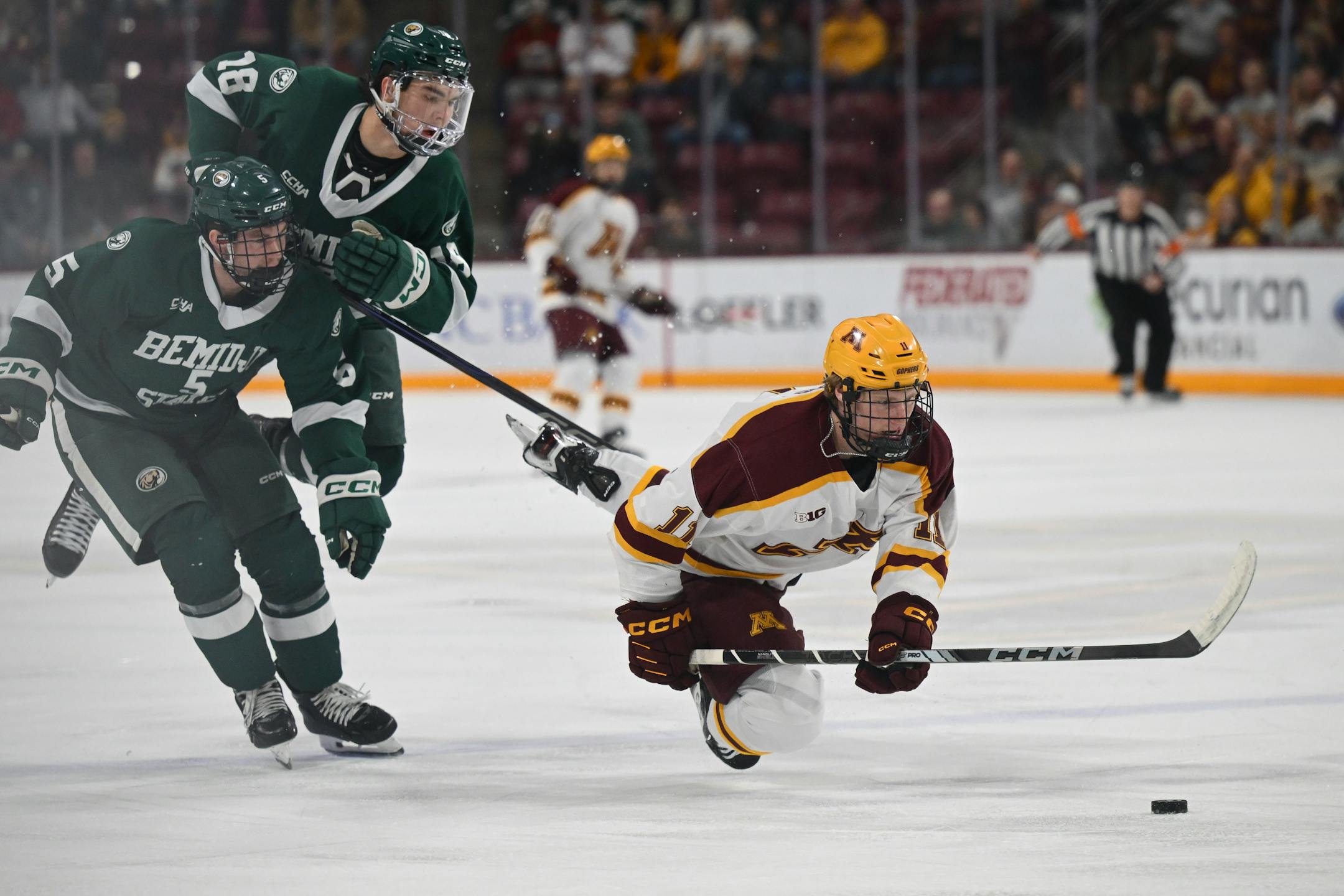 “We did a lot of good things tonight, but then we self-inflicted with turnovers and let Bemidji back into it, and we haven’t seen that,” Gophers coach Bob Motzko said. “We were our worst enemy and our best friend in the same game tonight, but we gutted through it.”
