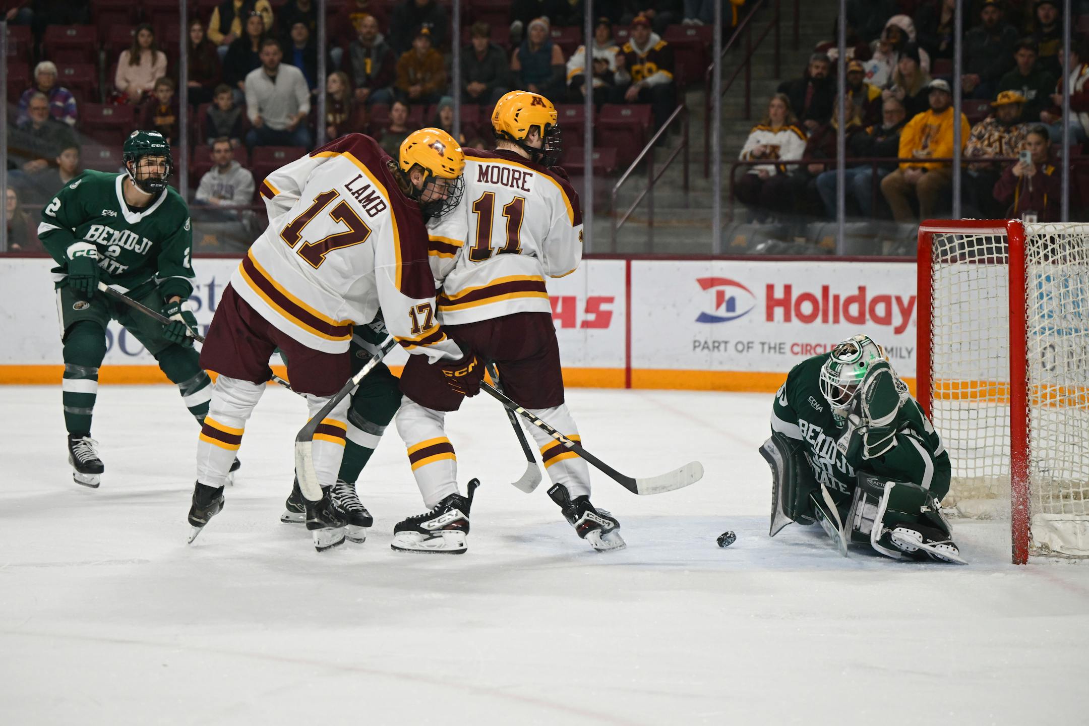 Brodie Ziemer and Lamb scored less than two minutes apart to give the Gophers a 2-0 lead after six minutes of play. Moore assisted on Ziemer’s goal while Snuggerud assisted on both.