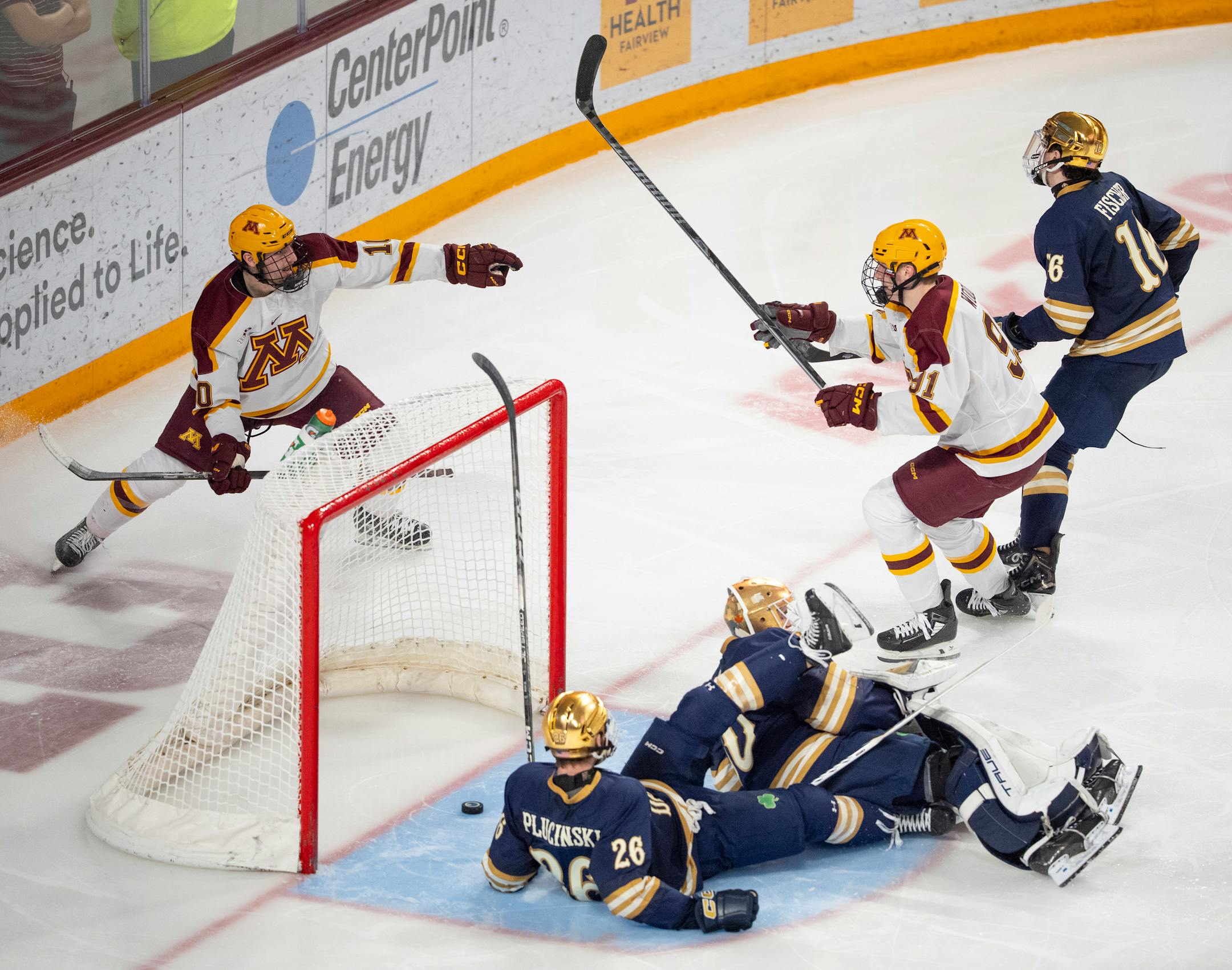 Up stepped Connor Kurth, who scored the go-ahead goal and set up the winner in a 4-2 victory over the Fighting Irish on Saturday night at 3M Arena at Mariucci. Minnesota’s victory evened the best-of-three series at a game apiece, and the Gophers and Fighting Irish will play Game 3 at 6 p.m. Sunday. The winner advances to a single-game Big Ten semifinal next Saturday.
