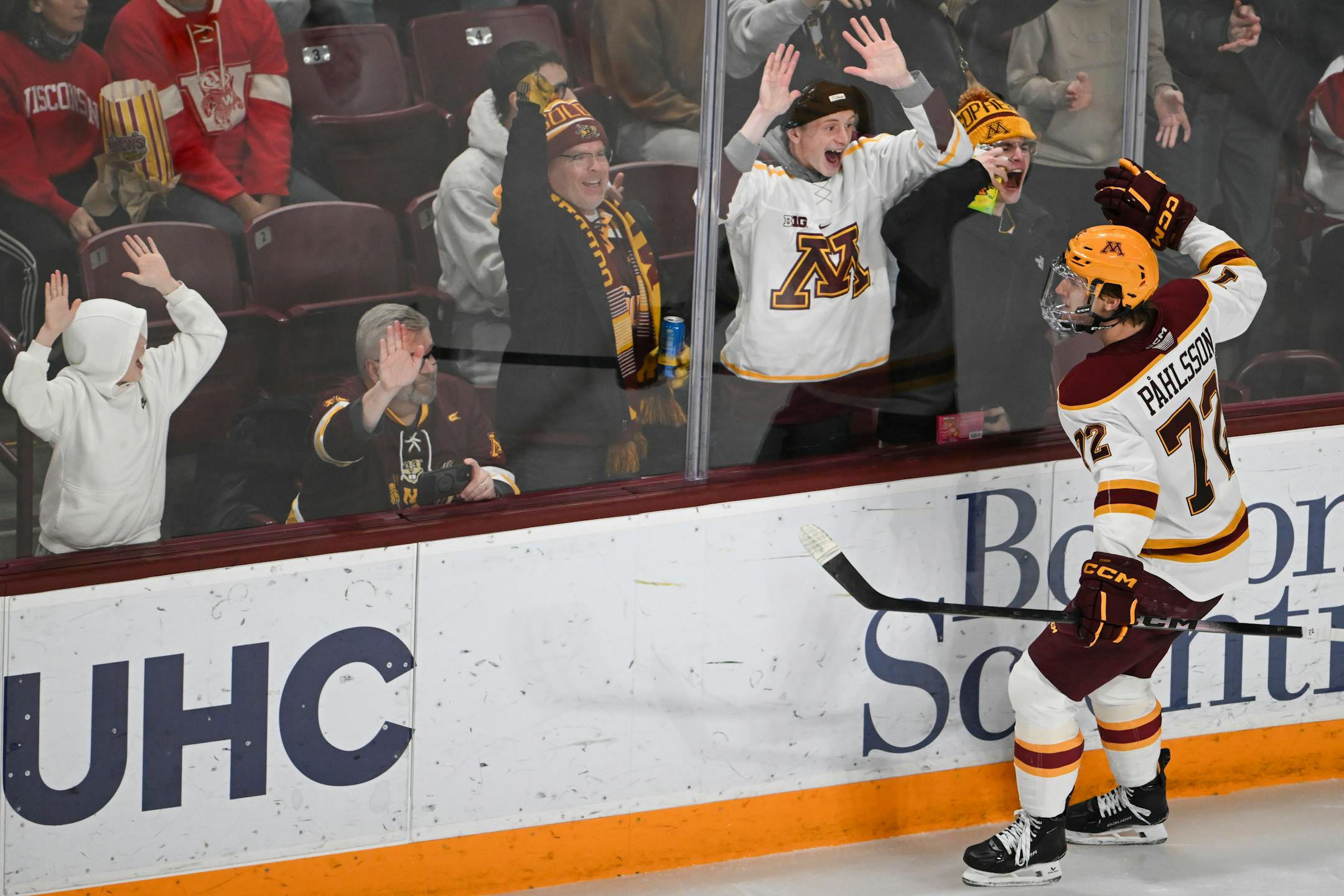 The sophomore center, who also had an assist Friday, added two goals and an assist in the Gophers’ 8-4 win over the Badgers on Saturday night.