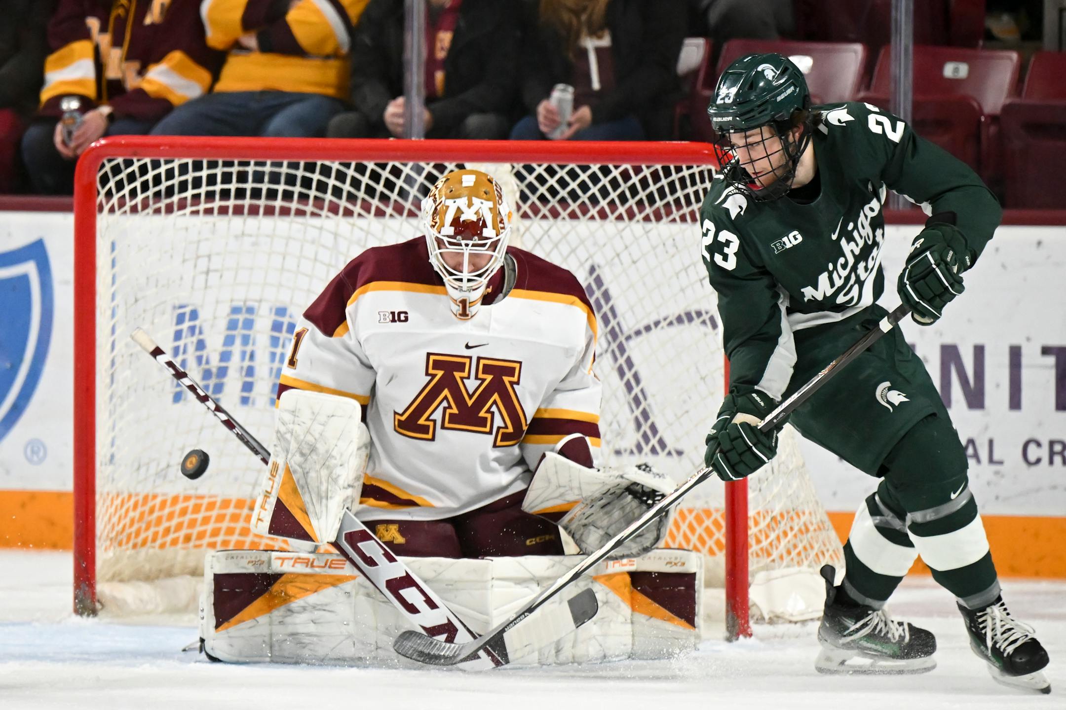 Forecast: Motzko is seeking more consistency from his team, and he should get it this weekend against a Buckeyes team that is averaging 1.1 goals per game in Big Ten play. Look for G Justen Close (8-5-3, 2.59 goals-against average, .917 save percentage) to have a big series as the Gophers post their first sweep since the season-opening series against St. Thomas.