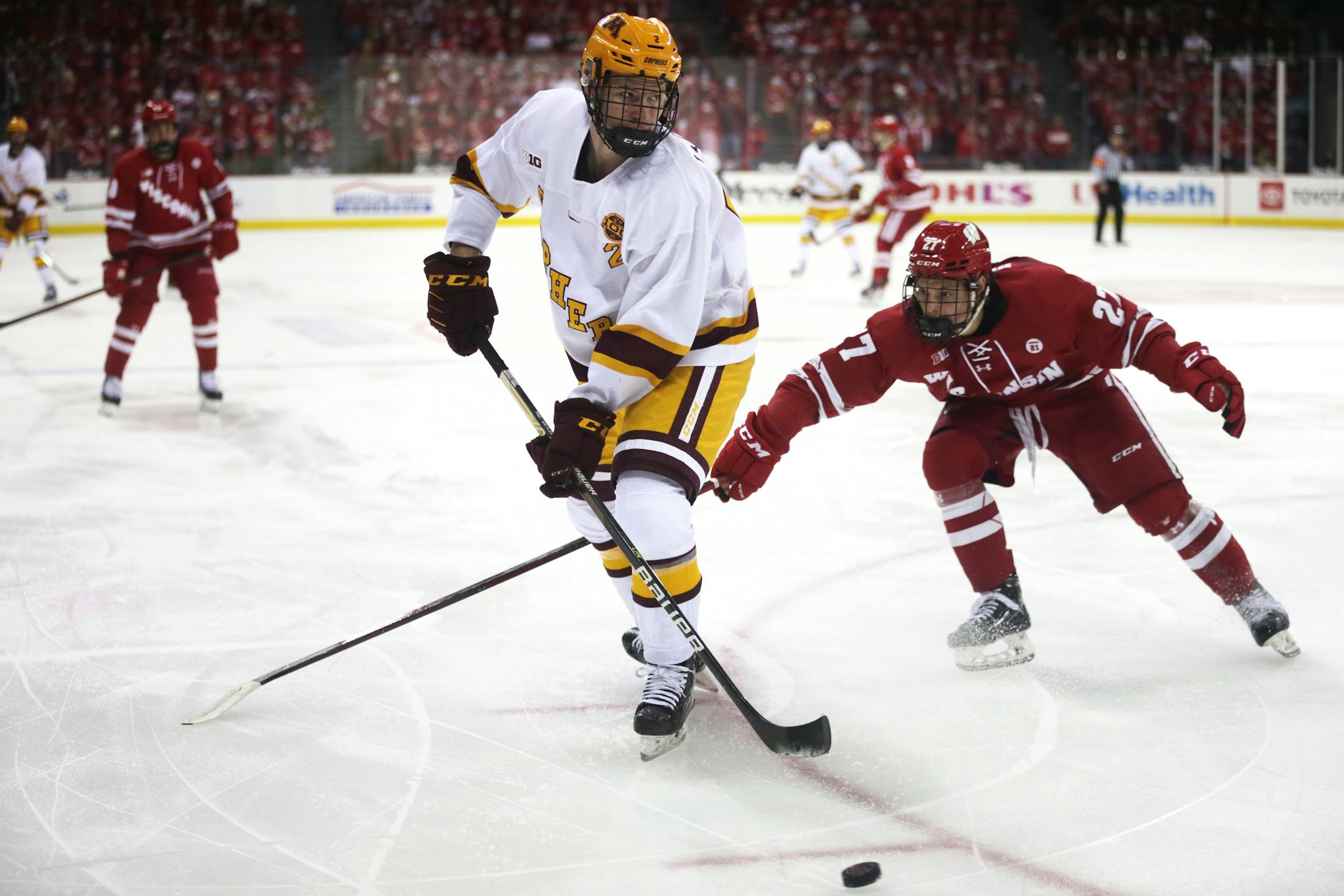 Freshman forward Aaron Huglen's power-play goal at 4 minutes, 41 seconds of the third period for the Gophers (21-11, 16-6 Big Ten) tied the score at 4-all. And, at 8:27, defenseman Jackson LaCombe scored the game-winner on his second goal of the season. Grant Cruikshank put an exclamation point on the comeback with an empty-netter with 39 seconds left. It was the senior forward's second goal of the game and sixth of the season.