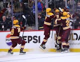 Brodie Ziemer’s empty-net goal with 1:21 remaining made it 5-3. Javon Moore sealed the victory with 7 seconds remaining. Luca Di Pasquo made 32 saves for the Gophers, who were outshot 35-28.
