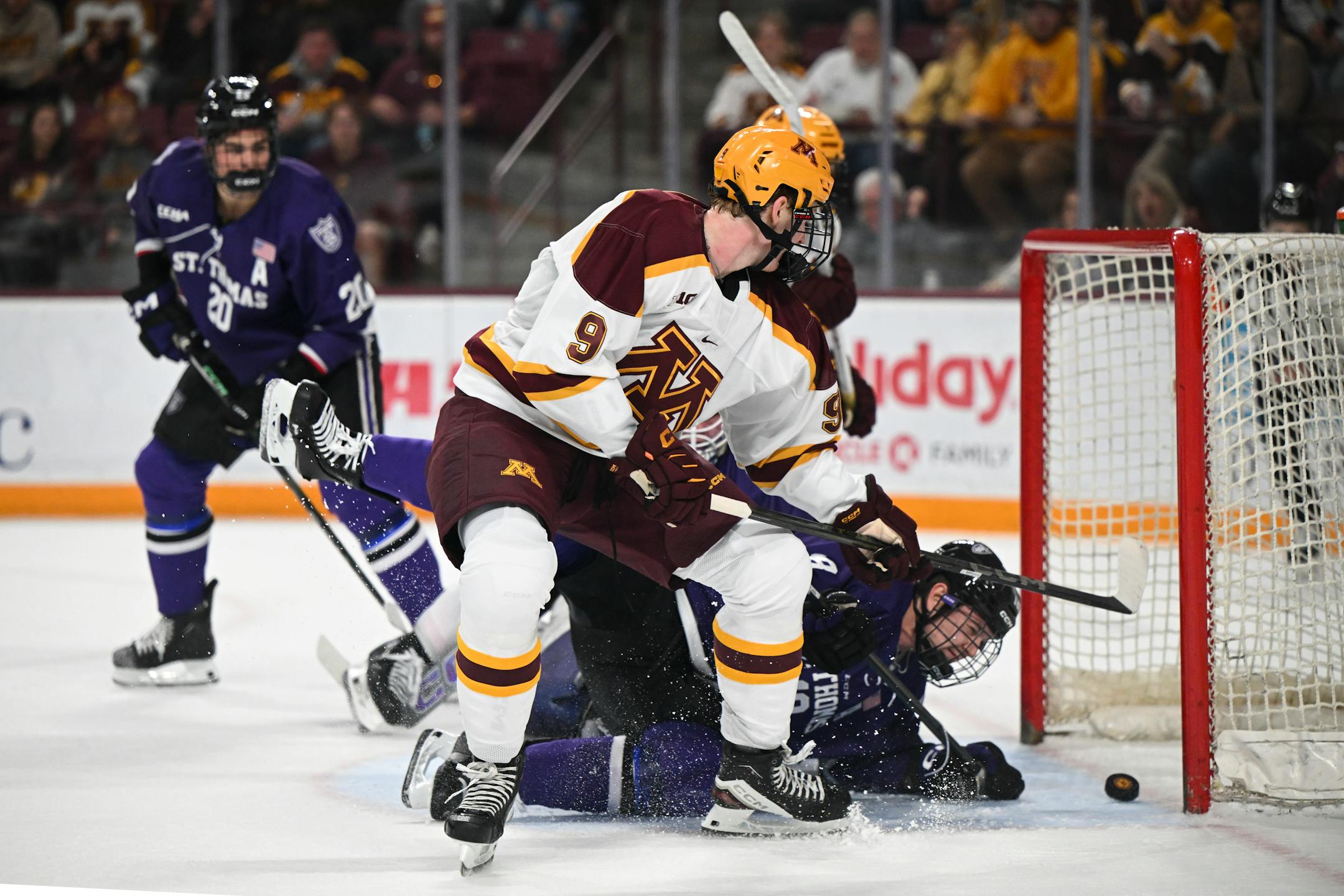 “Well, the right guys got the puck tonight and made plays,” Gophers coach Bob Motzko said. “Big-time goals out there. Some of our big boys made some great plays and stretched the game. There was a lot of the game that was 50-50. The coach in me thinks much more of the game was tight, especially the second period.”