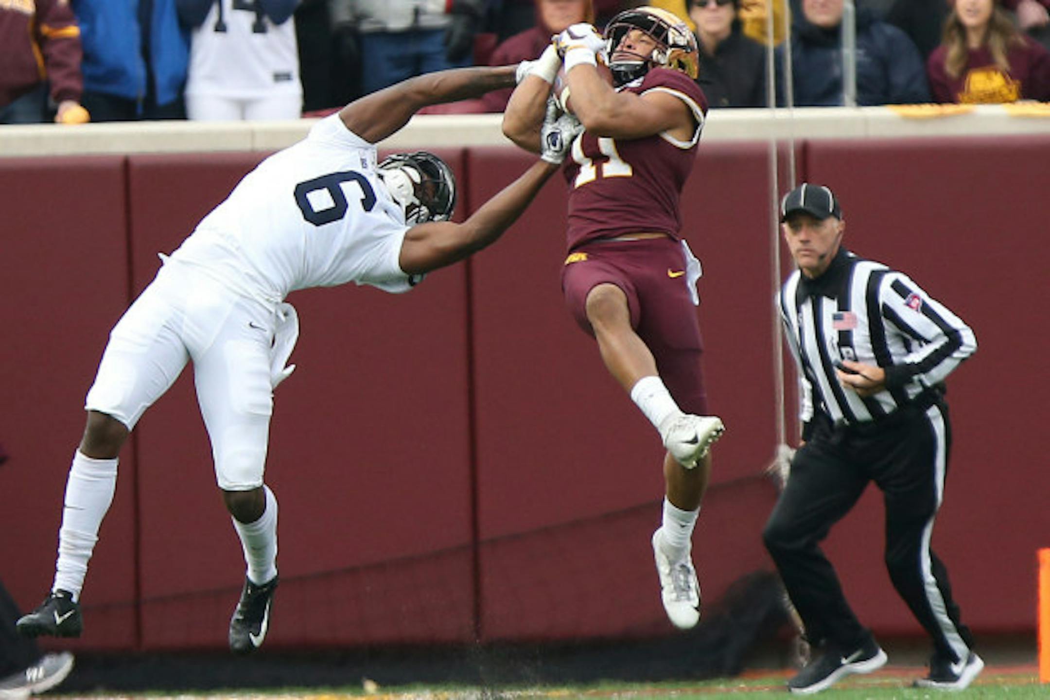 Safety Antoine Winfield Jr., is the Co-Defensive Player of the Week, after tying for a game-high 11 tackles (nine solo) and making two interceptions against Penn State. He returned one pick 33 yards, and both led to touchdowns for his team. His seven interceptions this season already ties a Gophers' record from 1970 and ranks second in the FBS.