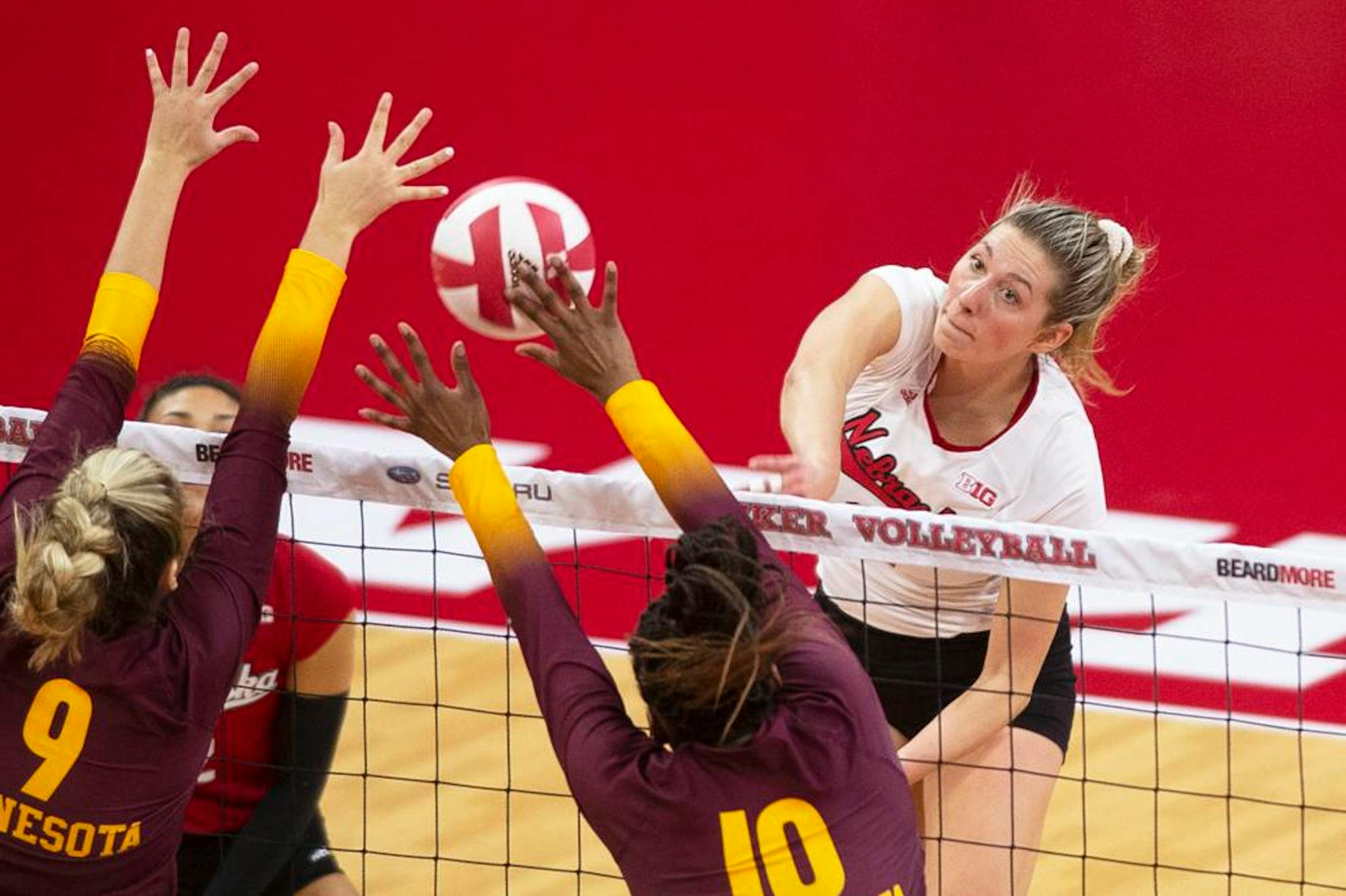 In many ways, the match was the opposite of Friday's series opener. The Huskers (7-1), who fell behind early in every set Friday, seized quick leads in the first two sets Sunday to put pressure on the Gophers right from the start.