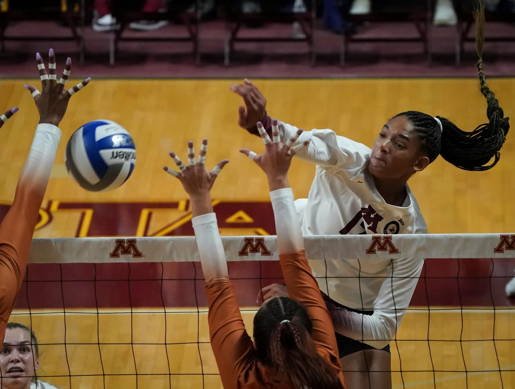 Gophers update: The No. 4 Gophers (2-1 ) dropped the final stop of a three-match Texas road trip in a four-set loss at No. 1 Texas in Austin on Wednesday. Coach Hugh McCutcheon's team opened the season by defeating then-No. 16 Baylor and Texas Christian in the Big Ten/Big 12 challenge. After making a full recovery from an abdominal injury, redshirt sophomore outside hitter Taylor Landfair leads the Gophers and ranks first in the Big Ten with 4.82 points per set. The U's next five matches will be at home, including three against ranked opponents: Florida (No. 13), Oregon (No. 18) and Stanford (No. 12).