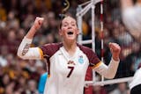 Carly Gilk and Kelly Kinney each had nine kills and Julia Hanson, playing her final match for the Gophers, had eight for the Gophers (24-10). Hanson finished her Gophers career with 1,041 kills.