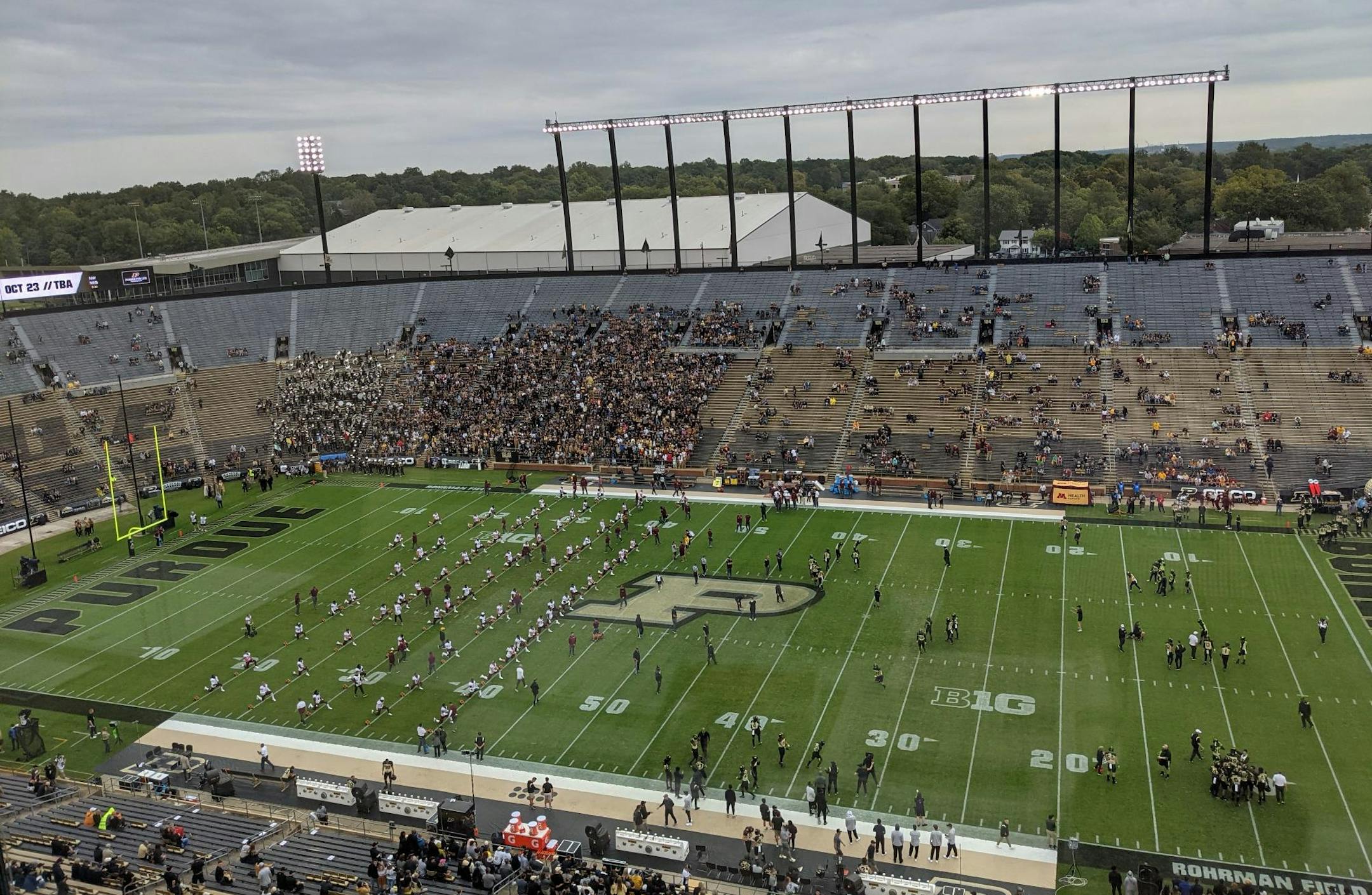 Purdue's top receiver, David Bell, was in concussion protocol this week but was warming up before the game and is a game-time decision. Running back King Doerue (undisclosed) is expected to play. Tight end Payne Durham (concussion) is out.