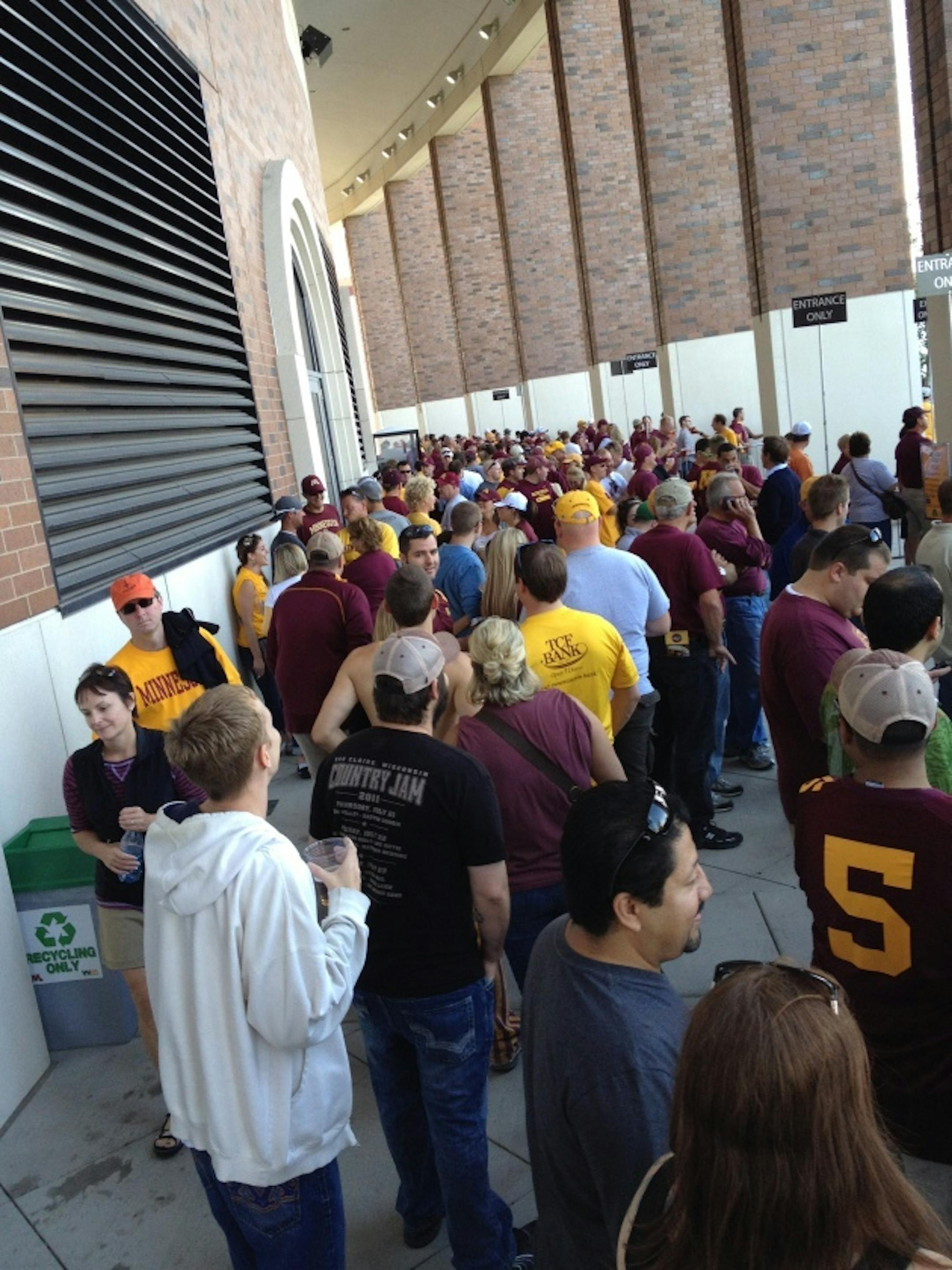For all of you that don't have the pleasure of being able to go to TCF Bank, and enjoy a nice cold one while watching the Gopher beat New Hampshire 44-7, I thought I'd share my experience with you. My seatmate Galen and I left after the 1st quarter to check out the beer/wine lines, see how smoothly the process went, and took some picture to share.