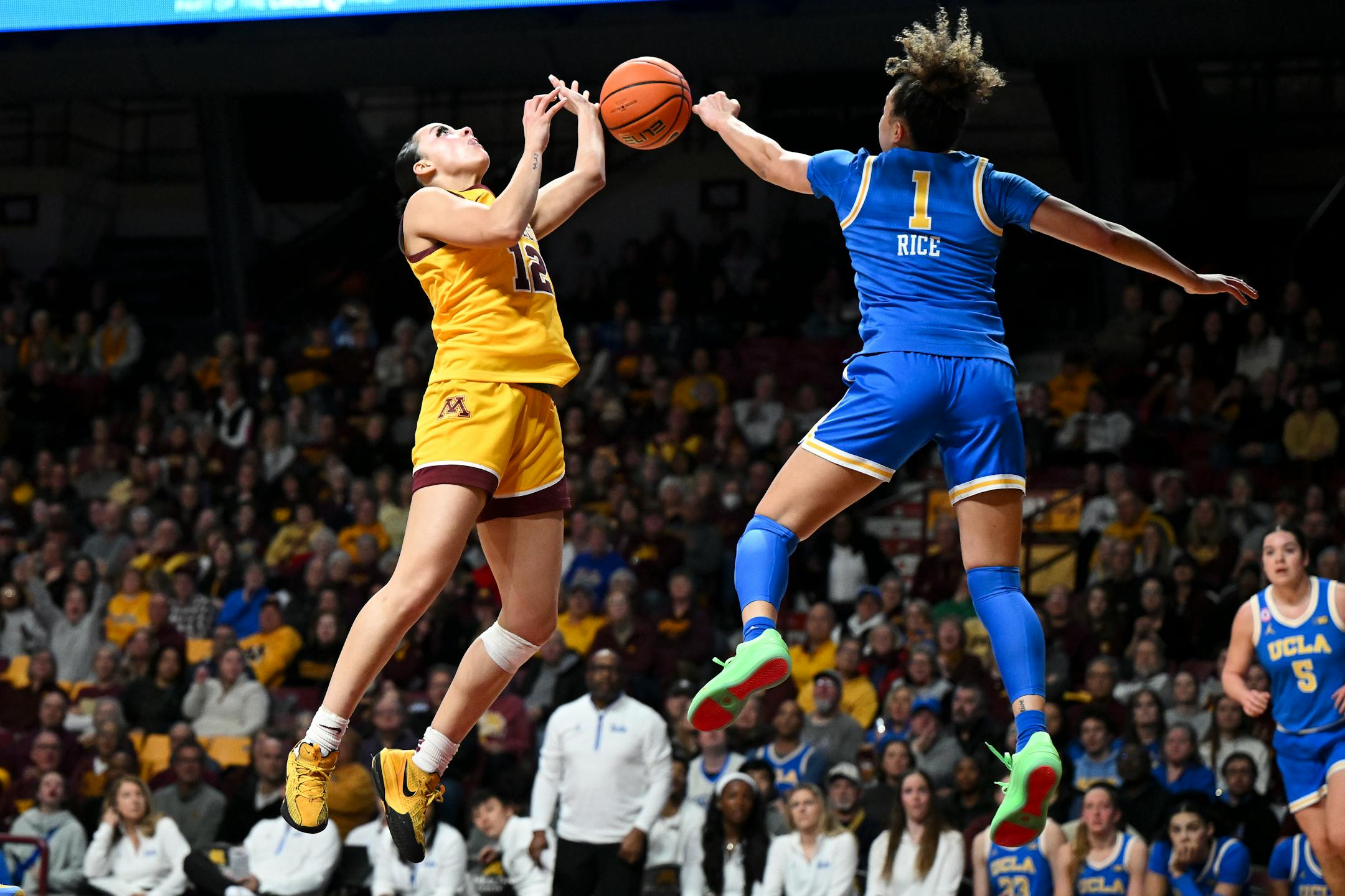 The Gophers took leads of 5-0 and 7-2 in the game’s first 1:57 as Grocholski hit a three-pointer and Battle sank two jumpers. UCLA, a team that coach Cori Close believes could have six players selected in this year’s WNBA draft, responded with an 11-2 run to take an 13-7 lead with 5:12 left in the first quarter. Six points during the Bruins’ run came on fast breaks and two came after a Gophers turnover. The lead grew to 15-7 before Grocholski scored inside with 59 seconds left in the quarter. The first quarter finished with UCLA leading 17-9.