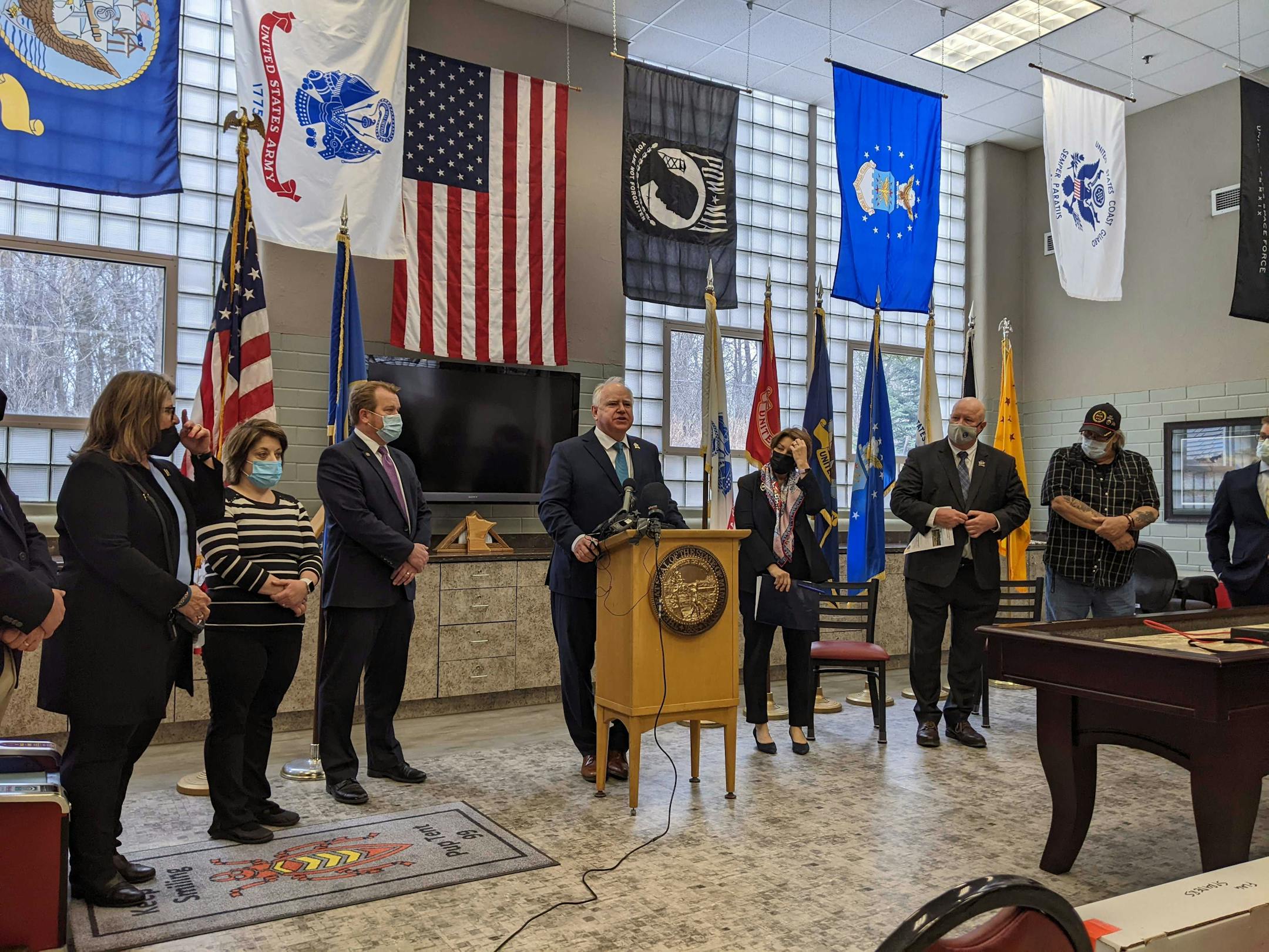 "What they're really asking for is to have their own private bathroom," said Gov. Tim Walz on Thursday after a tour of the veterans home that he wants to spend $59 million to rebuild in a state infrastructure package. "Serving the country, putting yourselves out there in Vietnam all the way up to today, that's a pretty small ask."