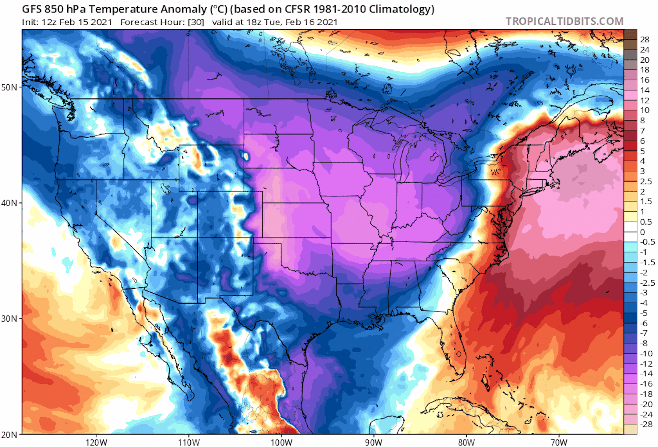 The worst of the winter sting will continue to slowly fade over the next several days. Here's the 850mb temp anomaly from midday Tuesday to midday Thursday, which still shows below average temps in place across much of the nation, but it won't be as bitter as it was. Note that actual air temps in the Twin Cities this Saturday could warm into the 20s, while highs on Sunday could warm into the 30s!
