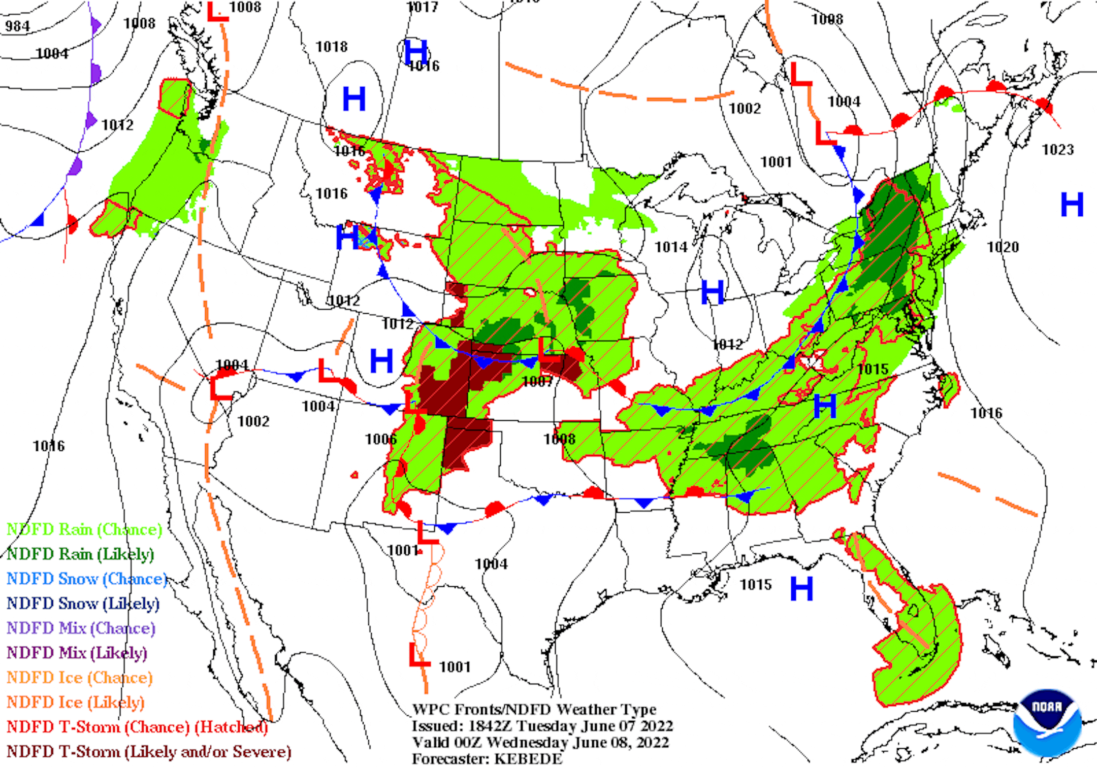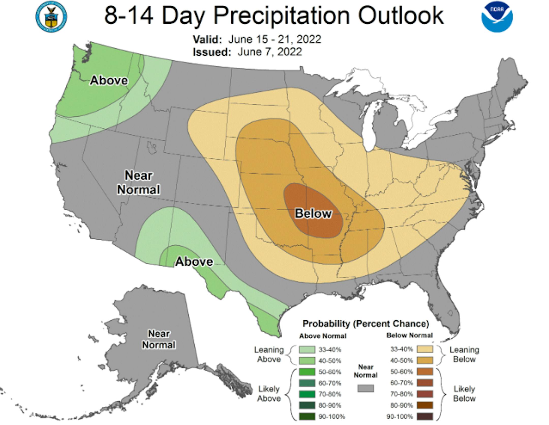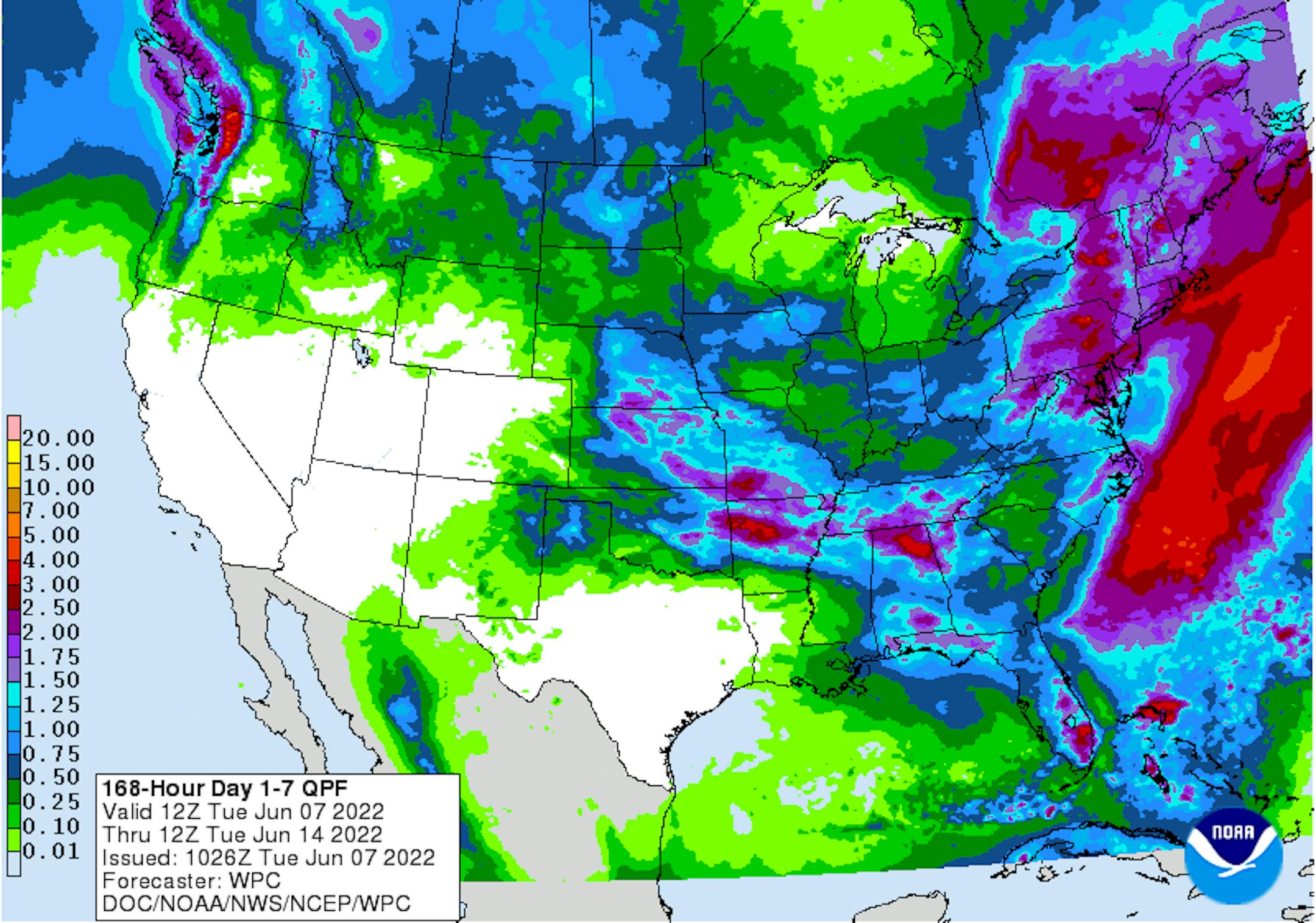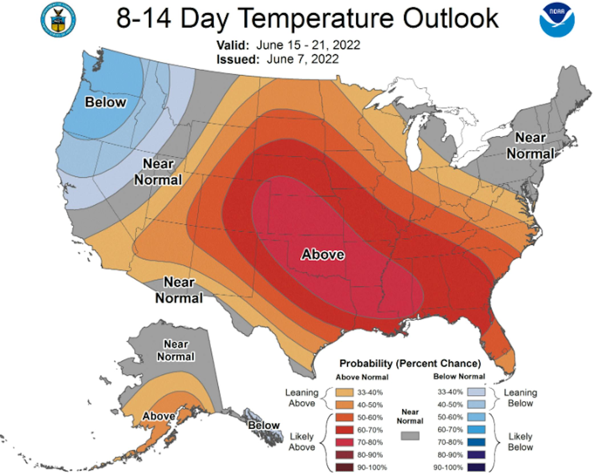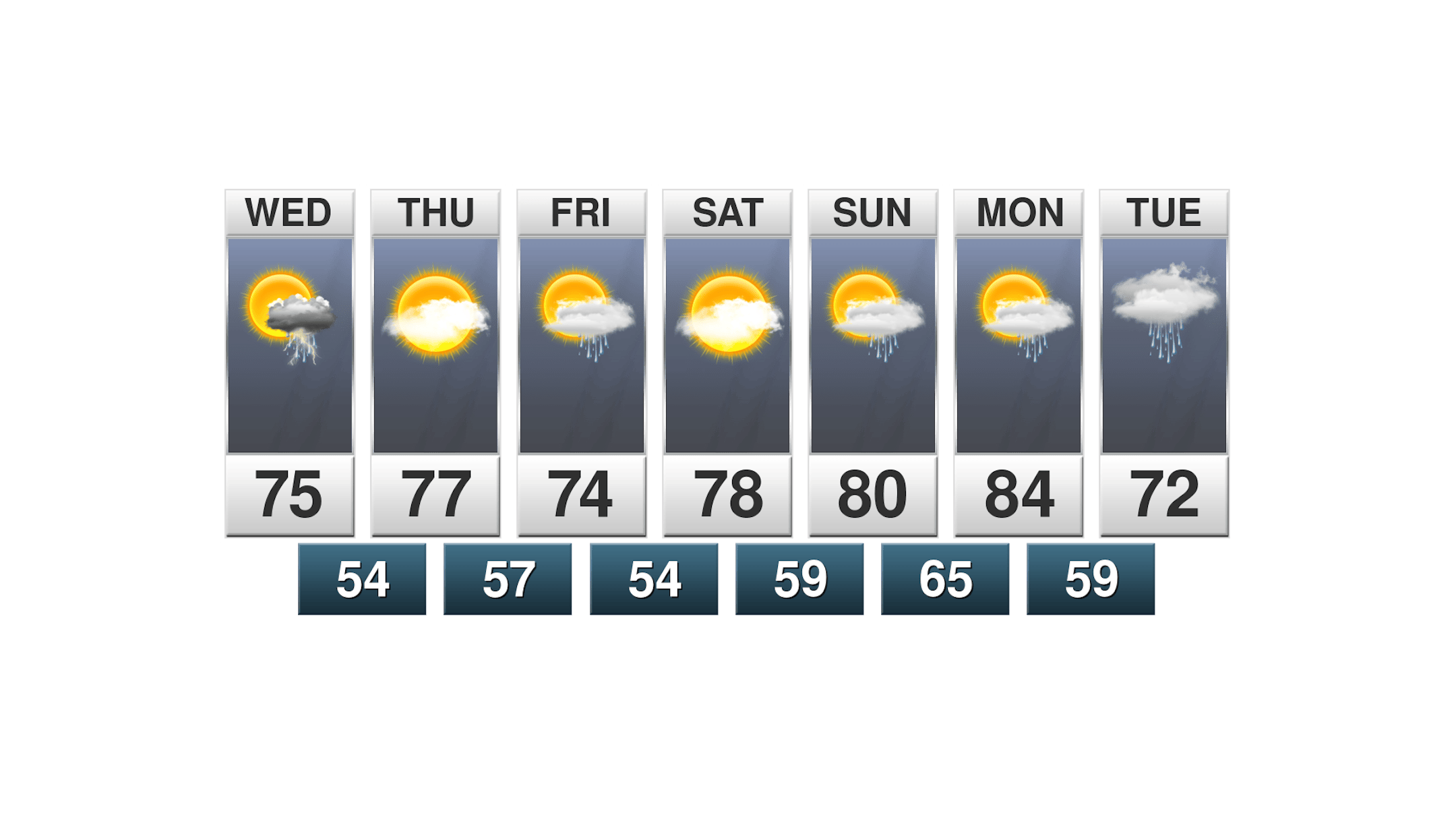 The extended weather outlook over the next 7 days spotty shower and thunderstorms chances a few days this week. There may also be a chance for a few thunderstorms late weekend and early next week.