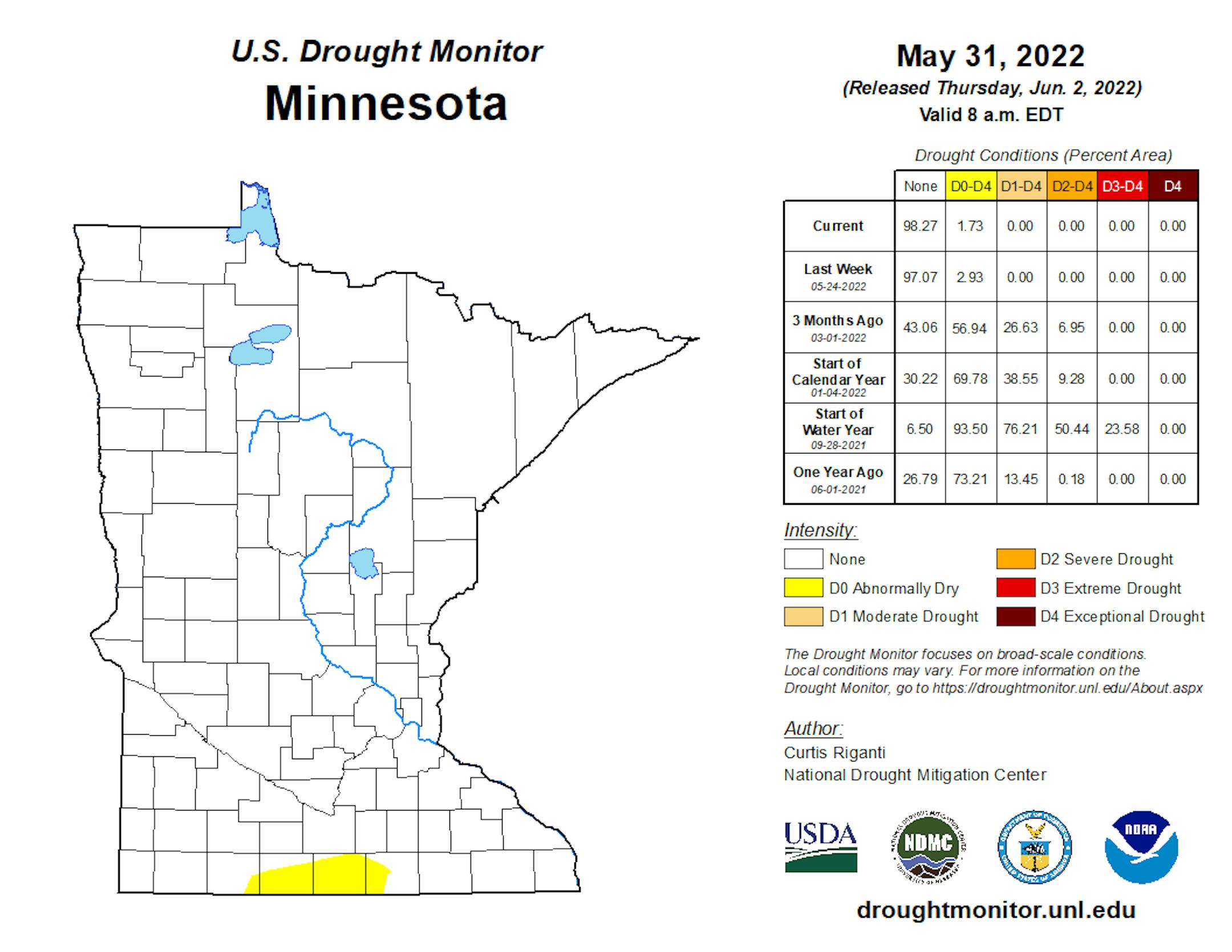 Thanks to above average precipitation so far this year, we've wiped out much of the drought that was in place to start the year. In fact, as of early January, nearly 10% of the state in northern Minnesota was considered in a severe drought. Now, only 3% of the state is considered to be abnormally dry.