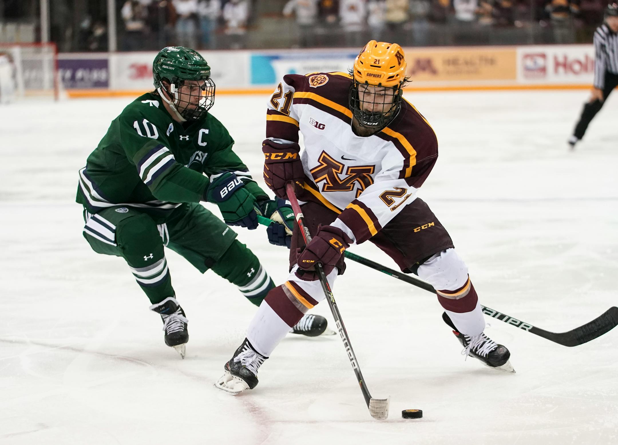Grant Cruikshank has been a solid, two-way player for the Gophers this season after arriving in Dinkytown as a transfer from Colorado College. After collecting 30 goals and 15 assists in three seasons for the Tigers, including the final two as captain, Cruikshank has six goals and six assists for the Gophers. In his last game, he scored twice as the Gophers rallied from a three-goal deficit to beat Penn State 6-4 and run their winning streak to six games.