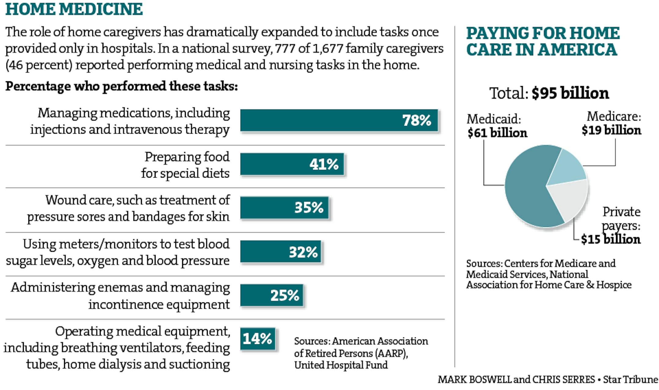 Home caregivers' dramatically expanded roll in performing health care tasks in the home and the costs associated with paying for care in the U.S.