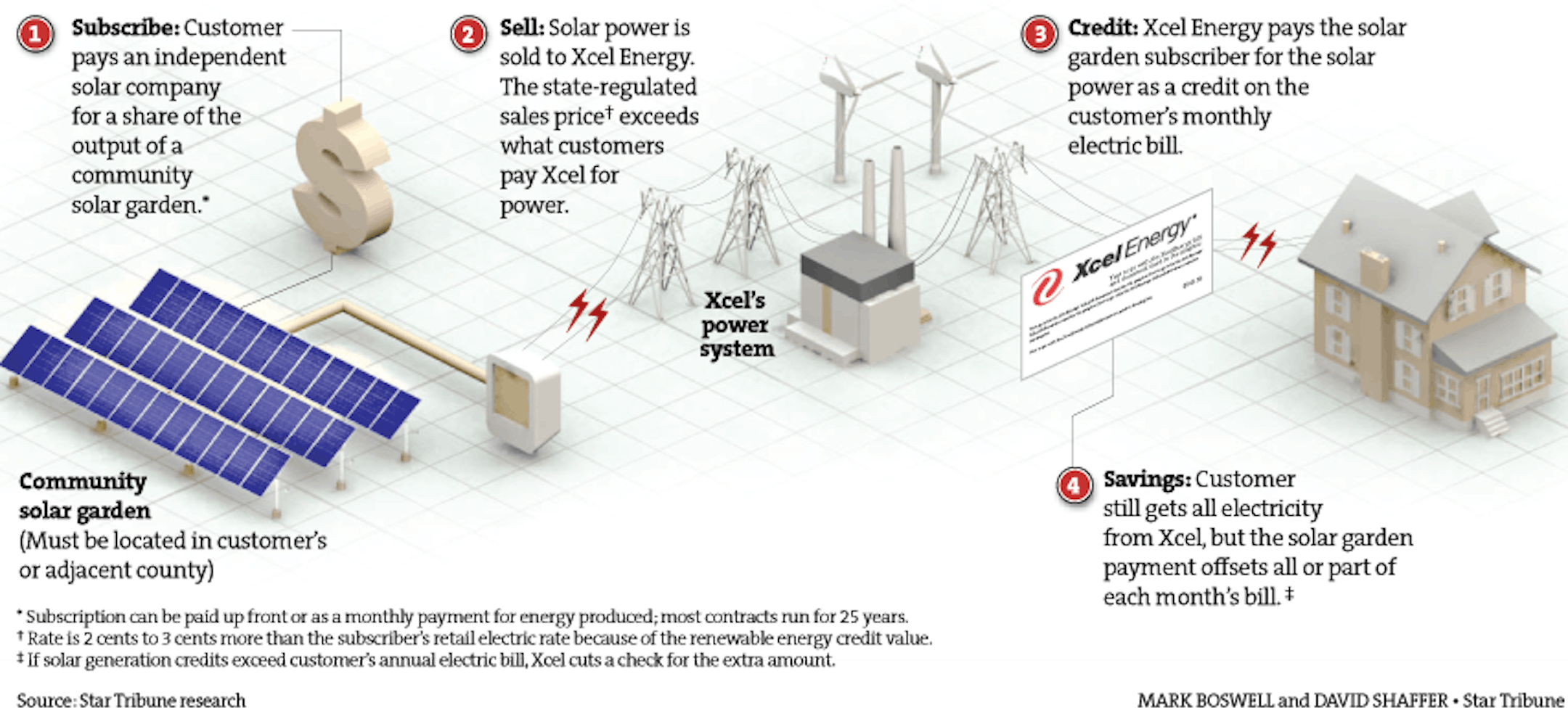 Graphic: How community solar gardens work for Minnesota Xcel Energy customers