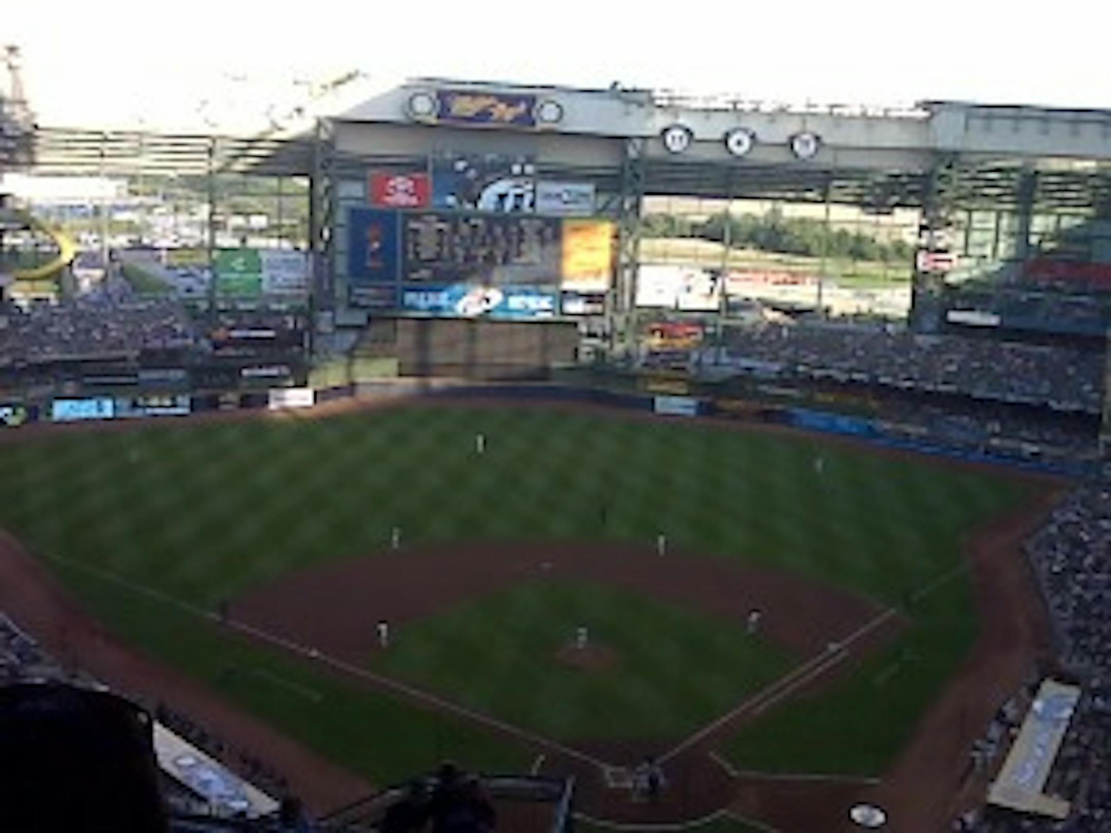 This year's trip took us to a familiar venue at the start: Miller Park in Milwaukee. This is the third time we've been to Miller for a Twins/Brewers series. This year, the crew decided to catch the first two games of the series; this morning, we leave for Chicago for a Braves/White Sox game and (hopefully) an entertaining night of watching the NBA draft and other shenanigans someplace(s) in Chicago. For now, though, here is a quick recap of the first 48 hours.