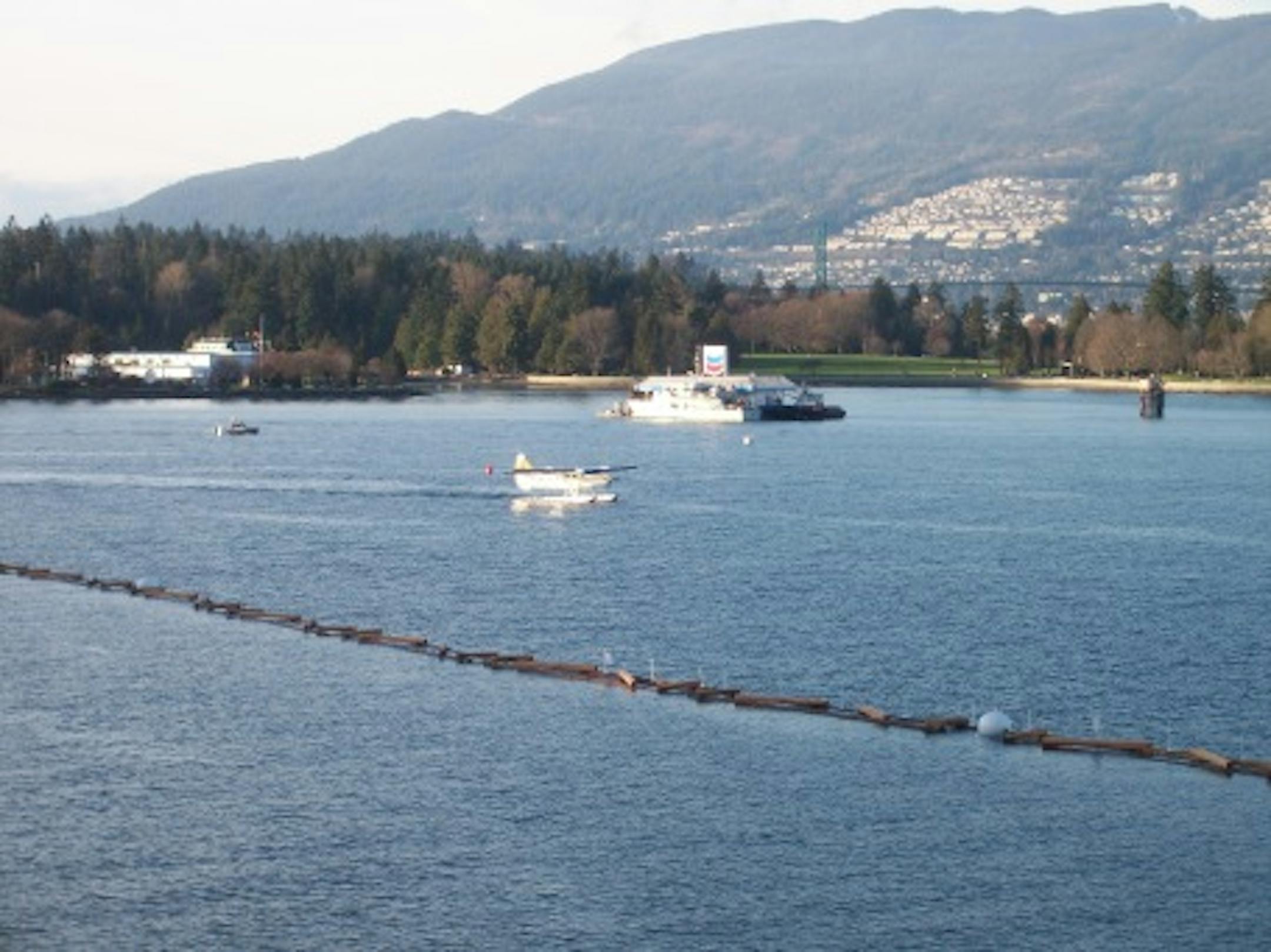 At least it feels that way. Maybe Spring Olympics, but hardly wintry. Fifty degrees, not a cloud in the sky and no hint of snow. There's a seaplane taking off in front of the Chevron gas island, which is in front of Stanley Park.