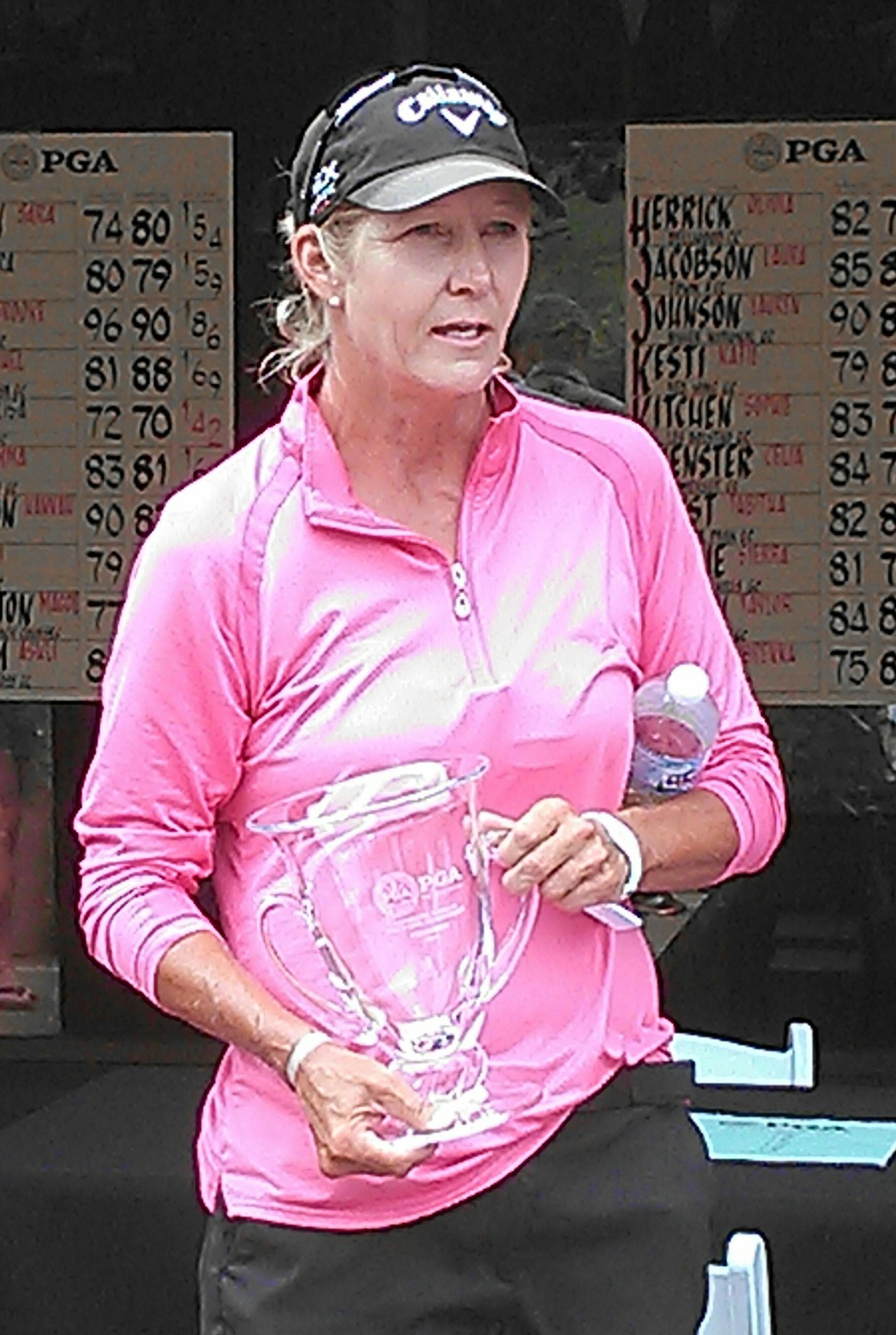 Her son Gage, one of the top boys' golfers in Arizona, is competing at the Resorters tournament this week at the Alexandria Golf Club, where Grimes is the director of instruction. Lisa left the course Tuesday, carrying her own bag with glass trophy encased in a cardboard box safely in tow.