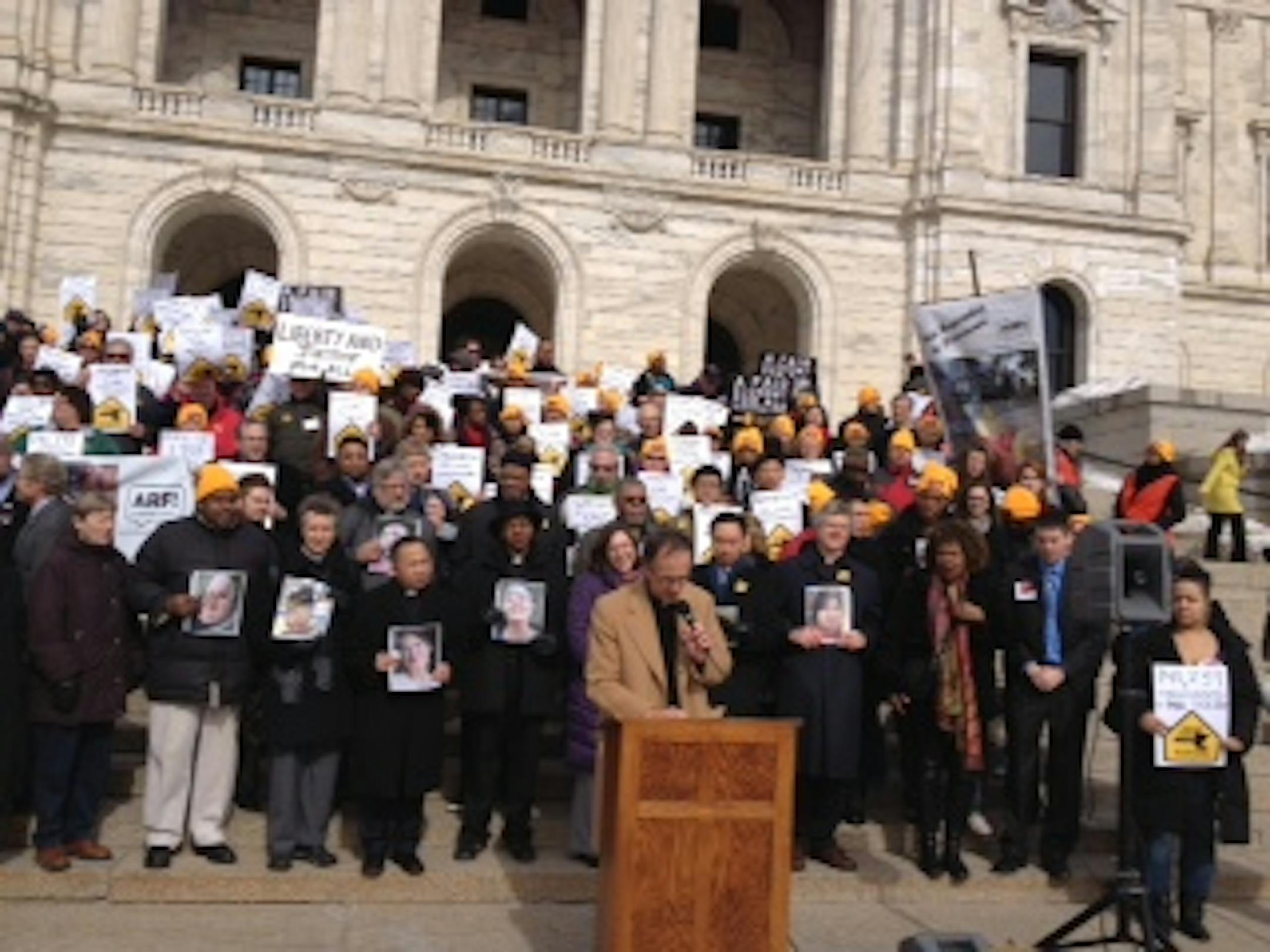 Minnesotans for a Fair Economy, a coalition of civic, labor and religious leaders released a report this week, estimating that foreclosures cost 141,239 Minnesotans their homes between 2008 and 2012, and driven home values down by some $20 billion. The group rallied at the Capitol Wednesday afternoon, holding photos of foreclosed homeowners and signs with their tally of foreclosures county by county -- 50,507 in Hennepin County, 15,697 in Anoka, 12,551 in Dakota County, 618 in Kandiyohi.