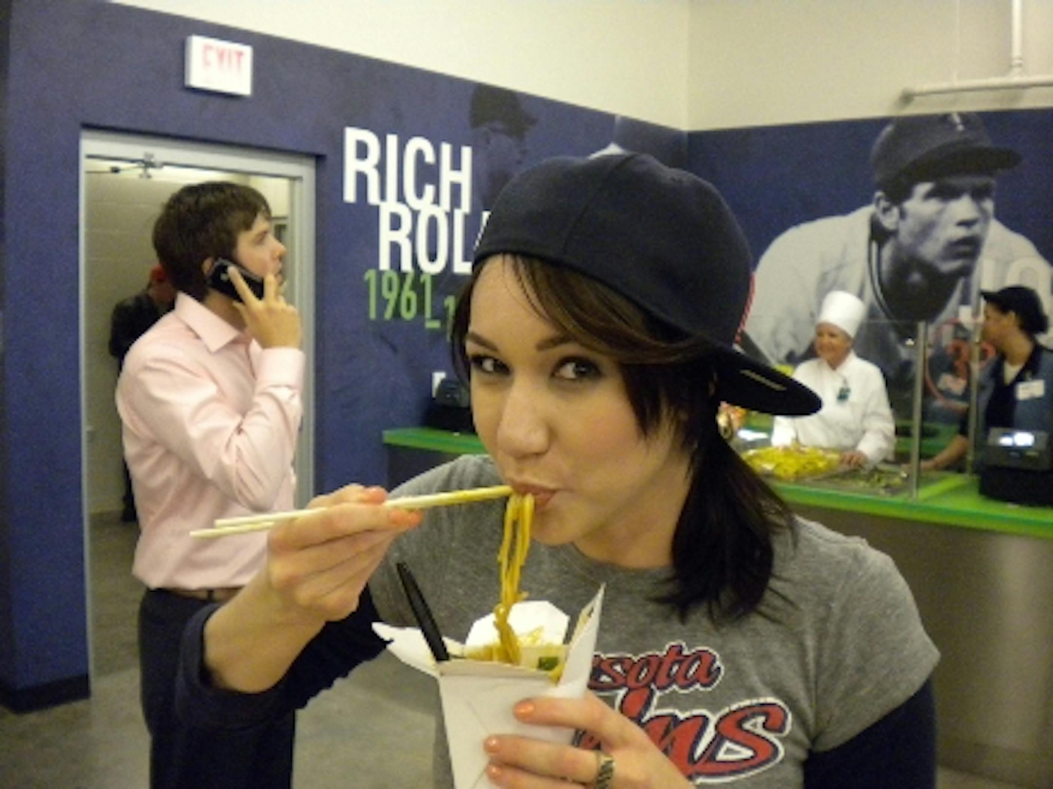 Twitter Pal Amber is back for her second (and third) tour of duty with RandBall guest posting. Somehow, you didn't scare her off last time. Amber has a ways to go in terms of being the RB Guest Poster who has provided the most content without us having ever met in person (that goes to Clarence Swamptown), but she has officially found her niche: Blog food critic. Stu has obscure bands. AZGopherGirl has pop culture found in People magazine. Fasolamatt has Cleveland knowledge. DaveMN has craft beers. Clarence has sports diagrams and outstate bars. Jon has "minor" sports. And so on. Amber attended her first two Twins games at Target Field last Monday and Tuesday. After reading various standard food critiques from the new ballpark, she had an idea to pit various foods against each other in a taste-off. We thought that sounded pretty good. But she ate so much we had to split this into two posts. So, Amber, without further rambling, tell us how our Target Field food tastes (Part I):