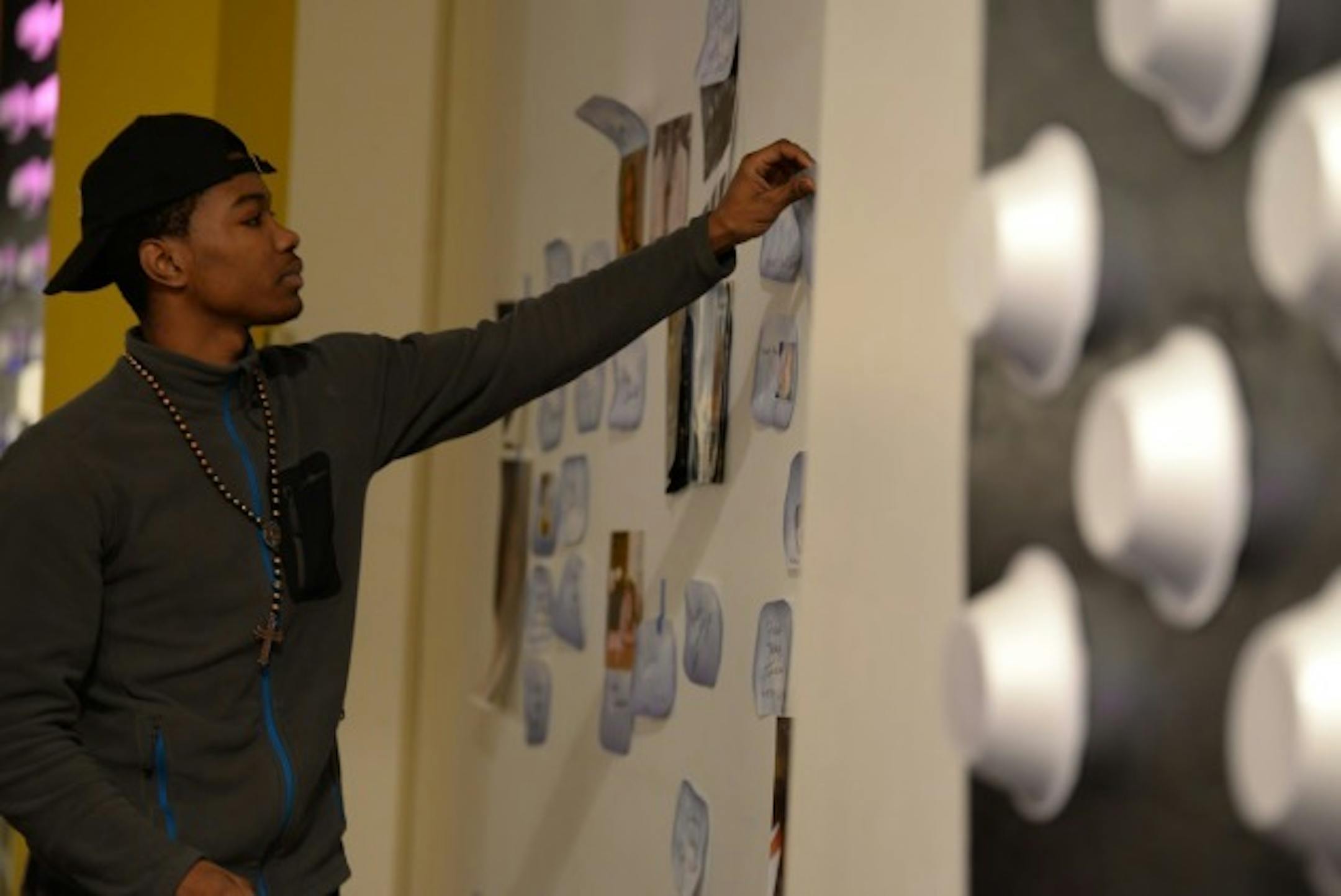 Jammie Franklin stares at the name of a friend killed by gun violence. / RALPH PRUITT for Protect MN