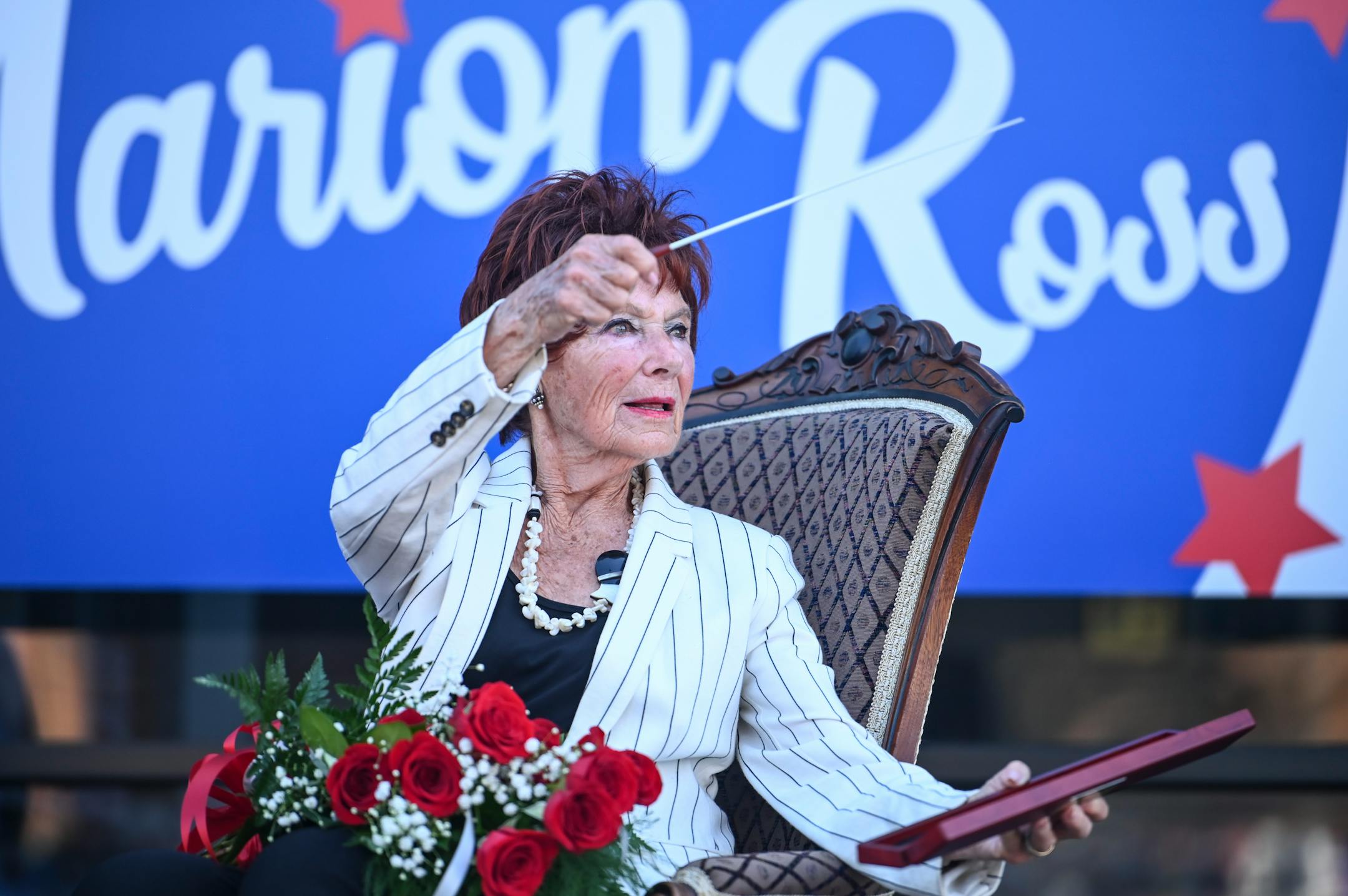 Ross entertained the few hundred fans who showed up, mugging as guest speakers sang her praises, planting kisses on the cheek of her bronze twin and playfully waving a baton-shaped award, presented by MacPhail Center for Music's CEO Kyle Carpenter.