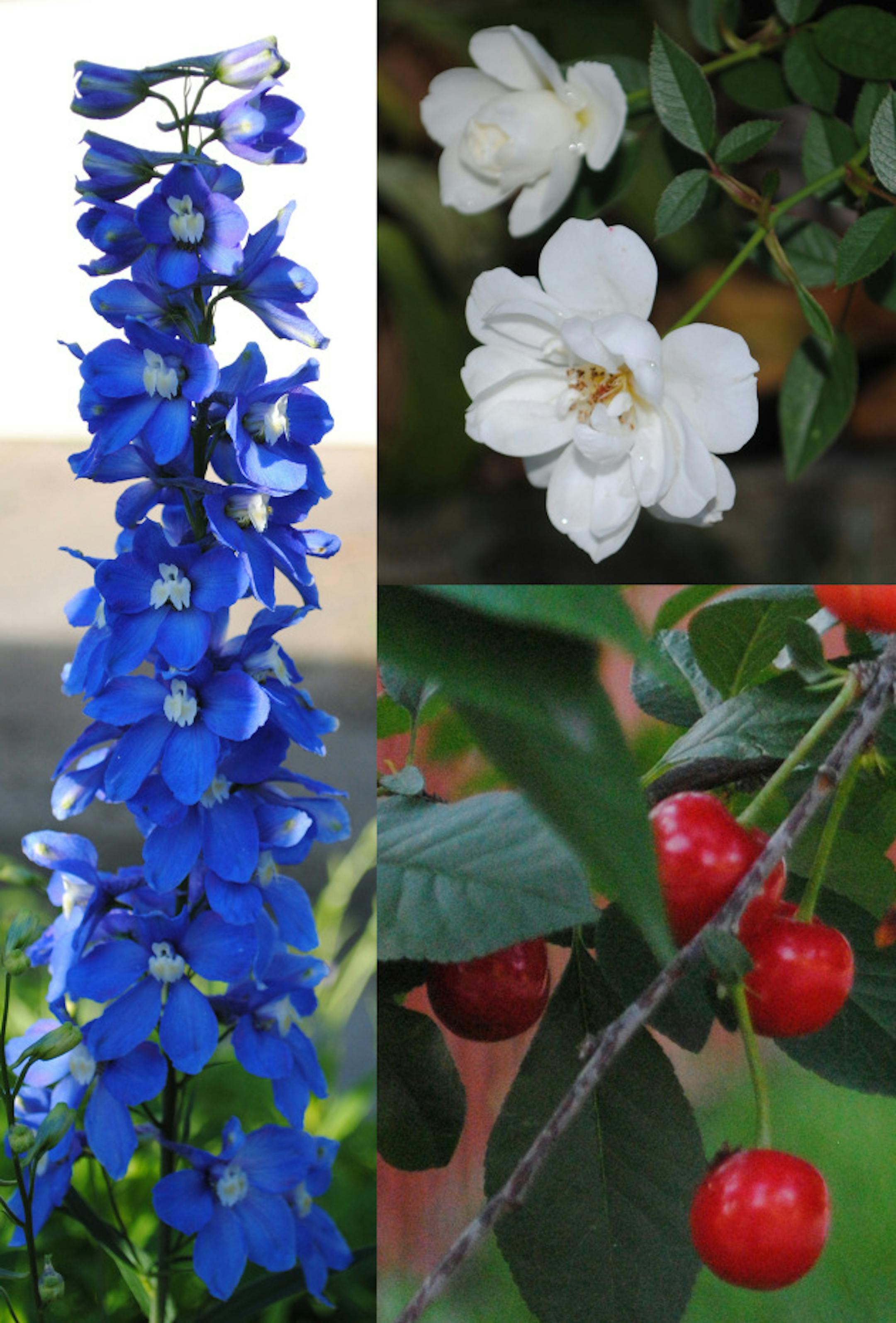 I went looking in my yard for some fodder for a red, white and blue bouquet. I've got a sea of blue to pick from, but I came up short on the red front. The berries in my neighbor's yard were the only patch of red to catch my eye.