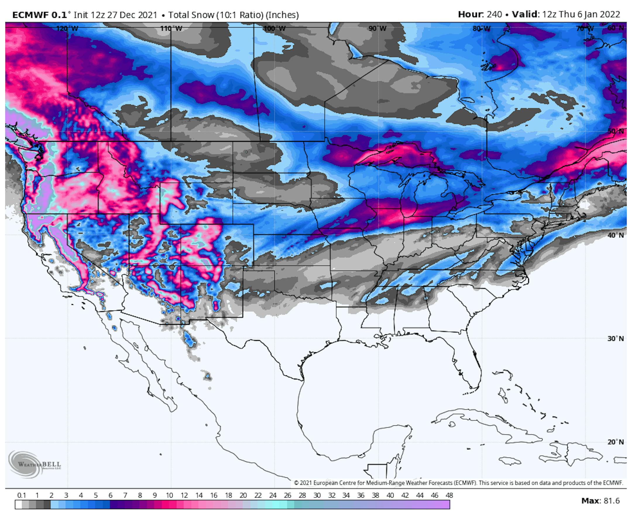 The extended weather outlook from AM Thursday to AM Sunday shows two more chances of snow. One system will bring light snow to the area on Thursday and a potentially more potent system will move through parts of the Upper Midwest on New Year's Day Saturday.