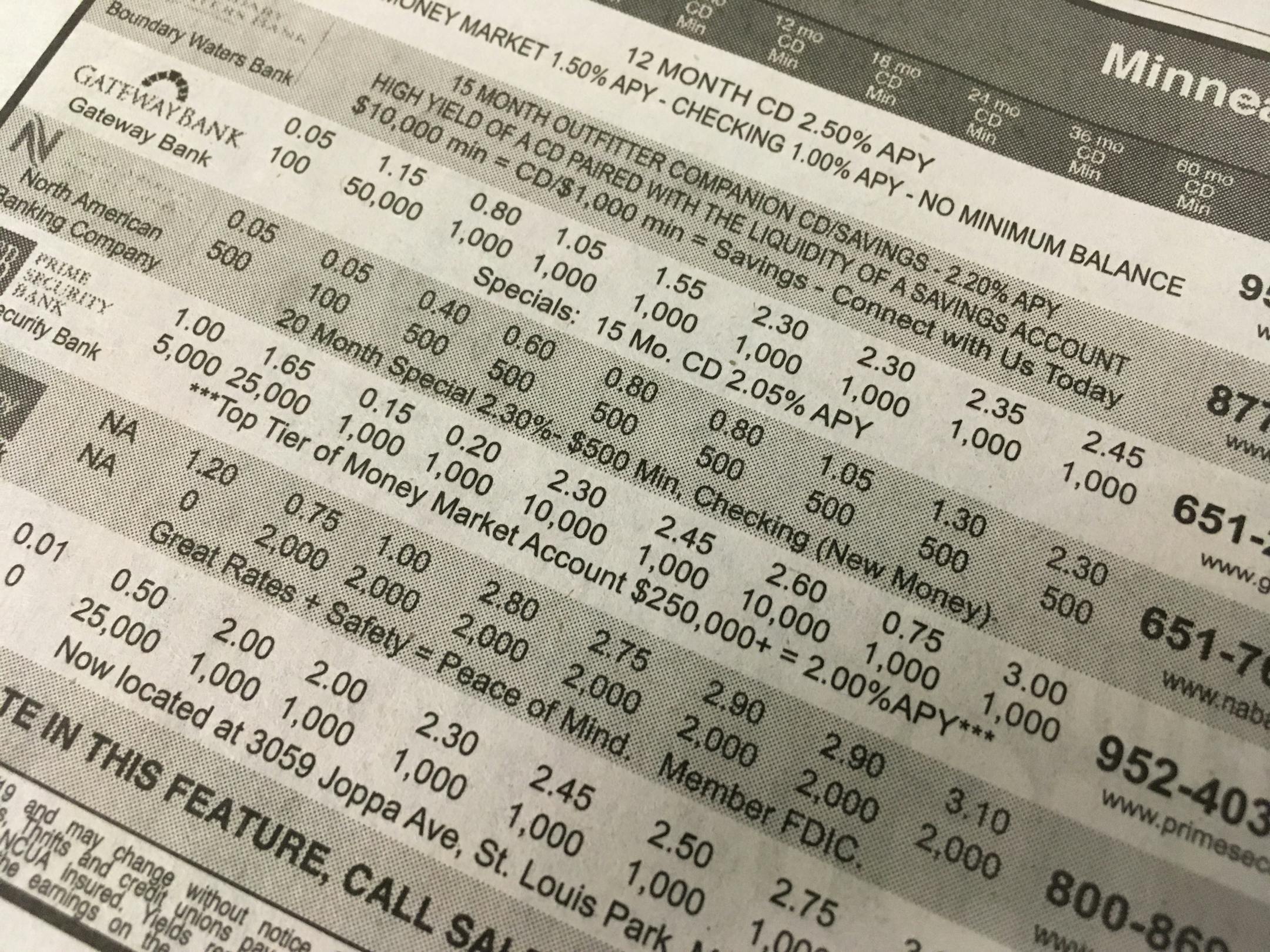 CDs rates published online at a handful of brand name Minnesota banks didn't come close to that.