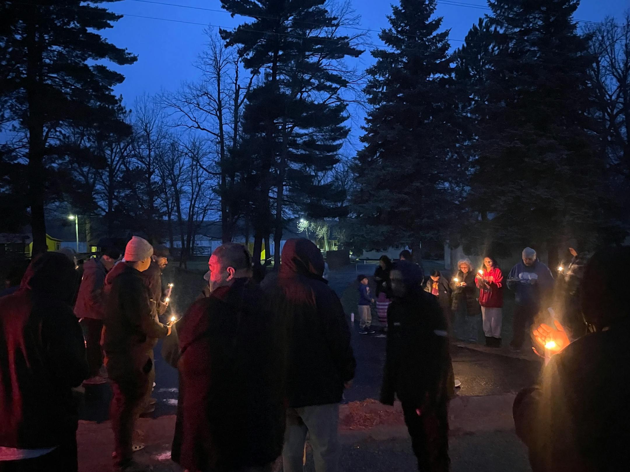 He placed a pair of Weyaus’ silver Nike shoes in the center of a prayer circle formed by 30 friends and relatives. They lit candles on the westside of Onigum Road, the candles replacing the glow of emergency lights from dozens of squad cars responding to the shooting days earlier.