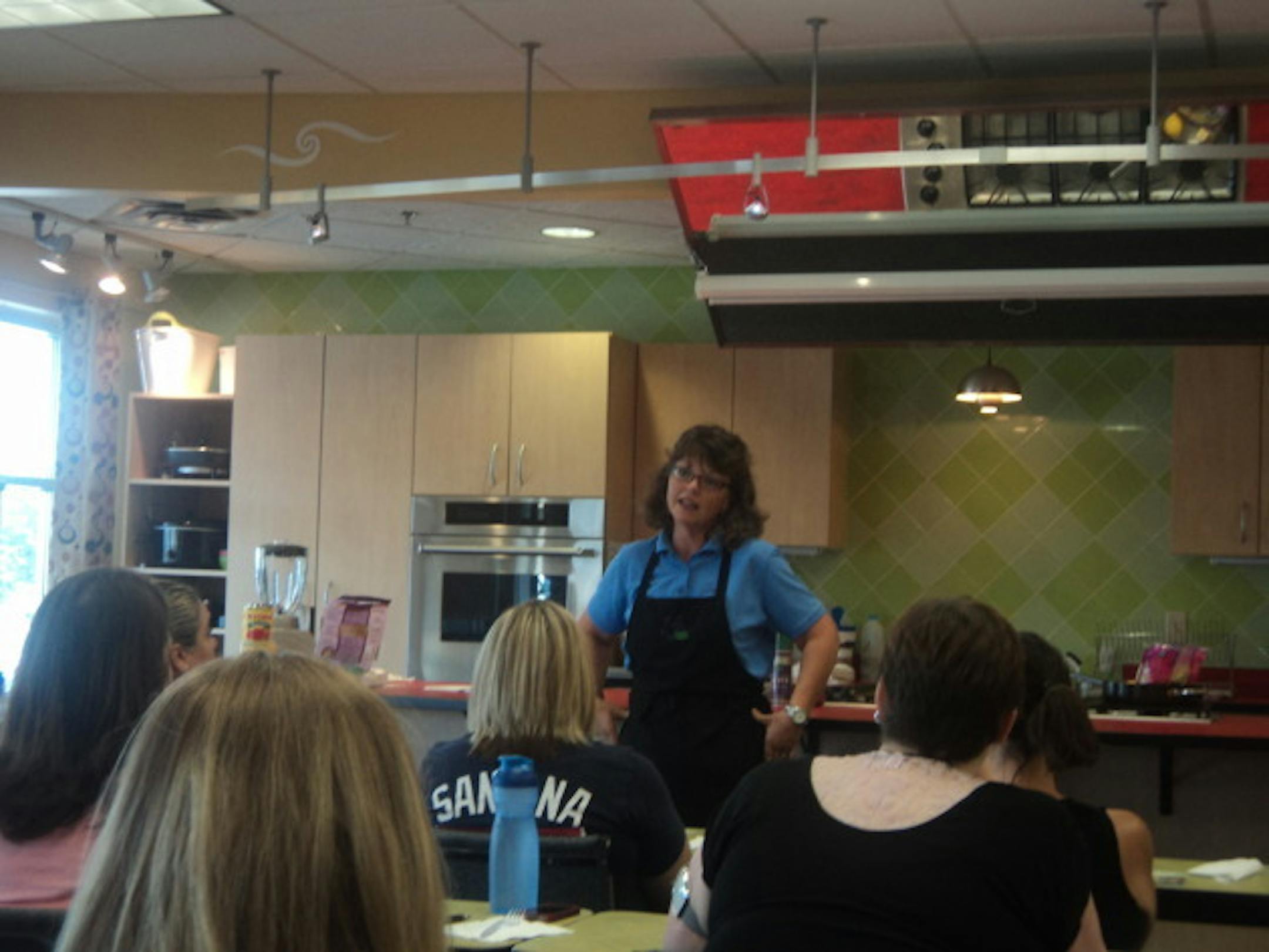Stacy started the class with an introduction to herself and what made her the self-proclaimed expert she says she is. Then, she rolled up her sleeves. We started with mac & cheese. Stacy talked about a general misconception about mac & cheese in that most people eat it for dinner which is the wrong way to eat mac & cheese. Whodathunk that mac & cheese is not dinner, but instead, a side dish served next to your protein, veggies and fruit?! Yep, it appears the correct way to eat mac & cheese is a quarter cup serving on your plate.
