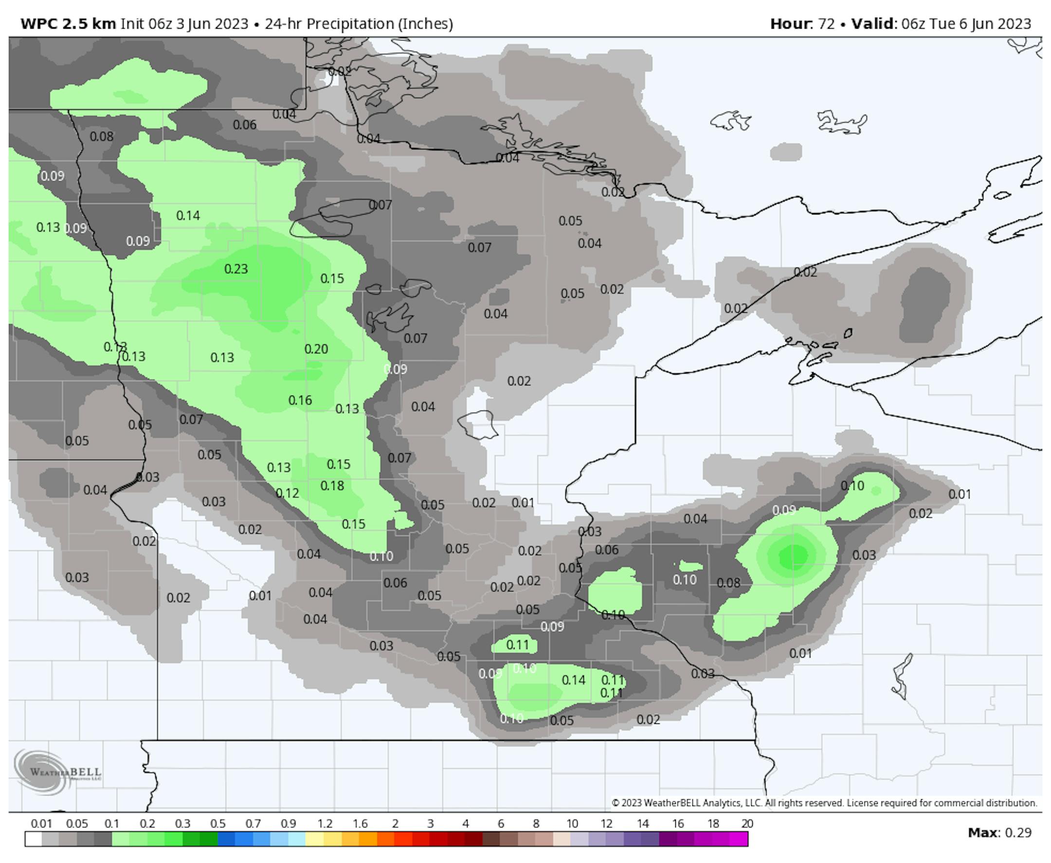 As we look at the potential of rain, the highest amounts are likely across northwestern Minnesota, where maybe up to a quarter inch will be possible. Amounts will be lighter closer to the Cities, but at this point, we'll take what we can get.