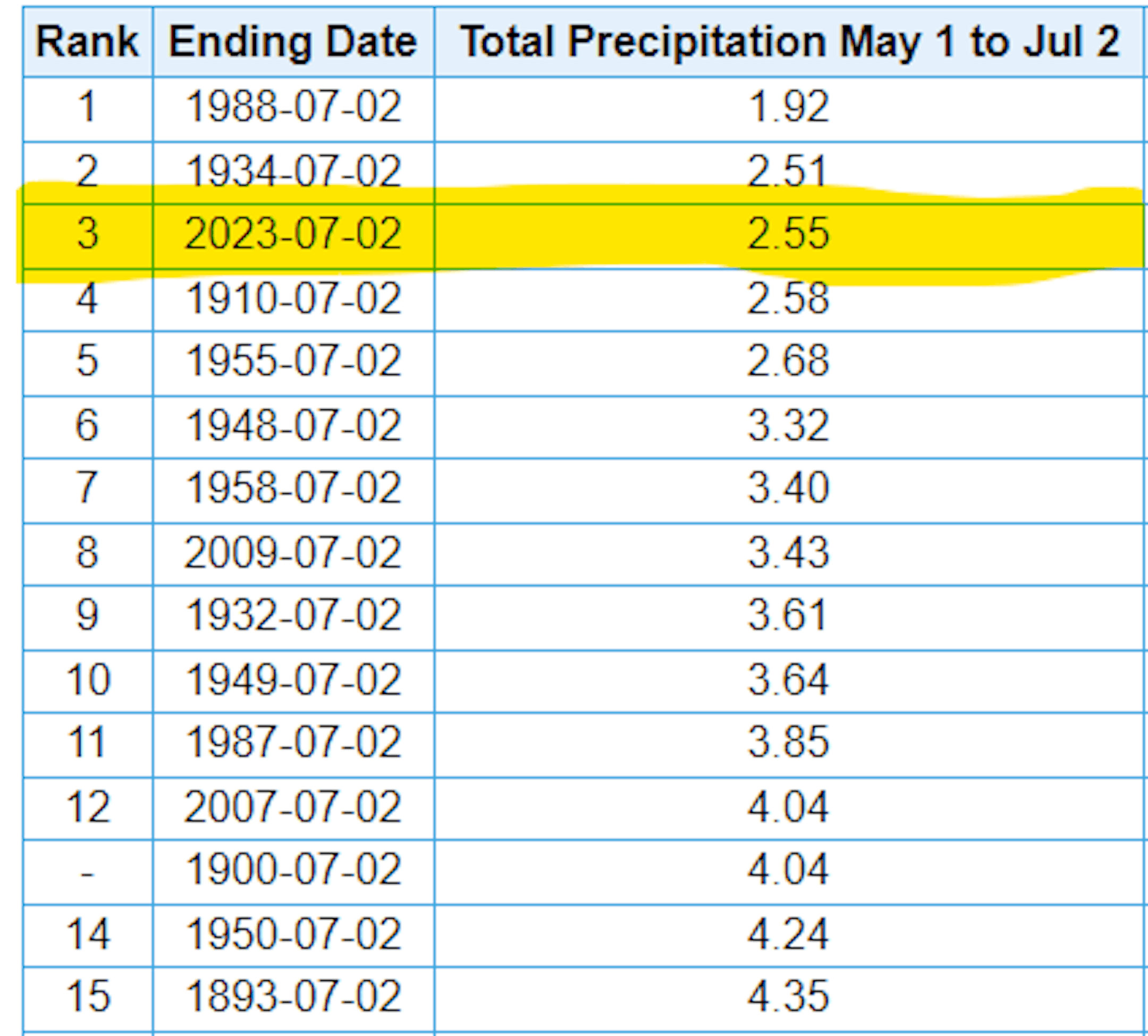 Believe it or not, the MSP Airport only saw 0.93" of rain for the month of June, which is good enough for the 2nd driest June on record. Note that there have only been 3 Junes on record that have seen less 1" of rain since records began in the 1870s.