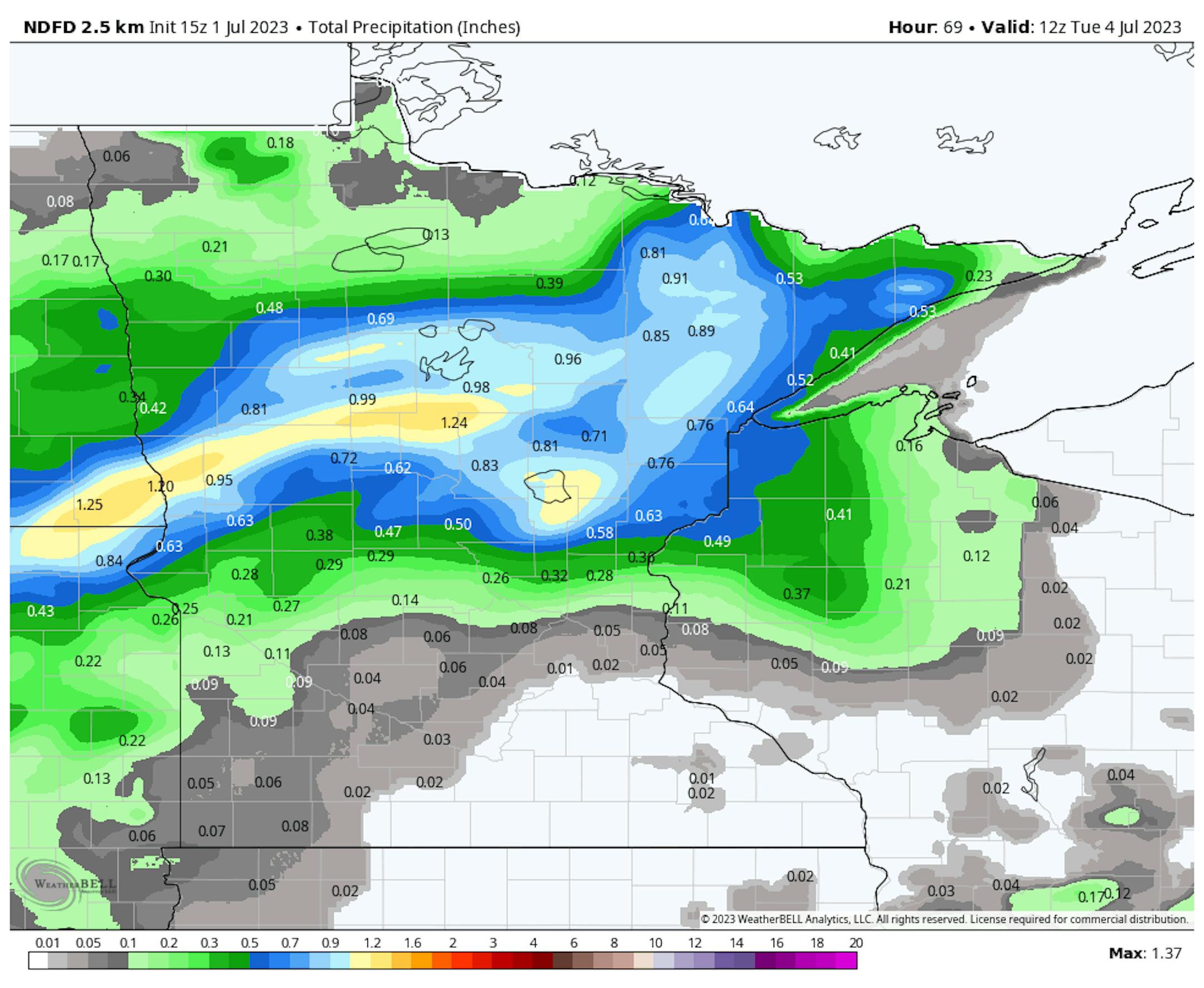 There has only been 2.55" of rain at the MSP Airport since May 1st, which is the 4th driest May 1st - June 30th on record. The driest such stretch was back in 1988, when only 1.92" of rain fell.