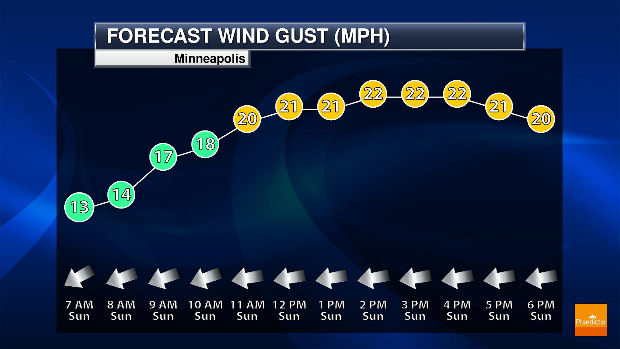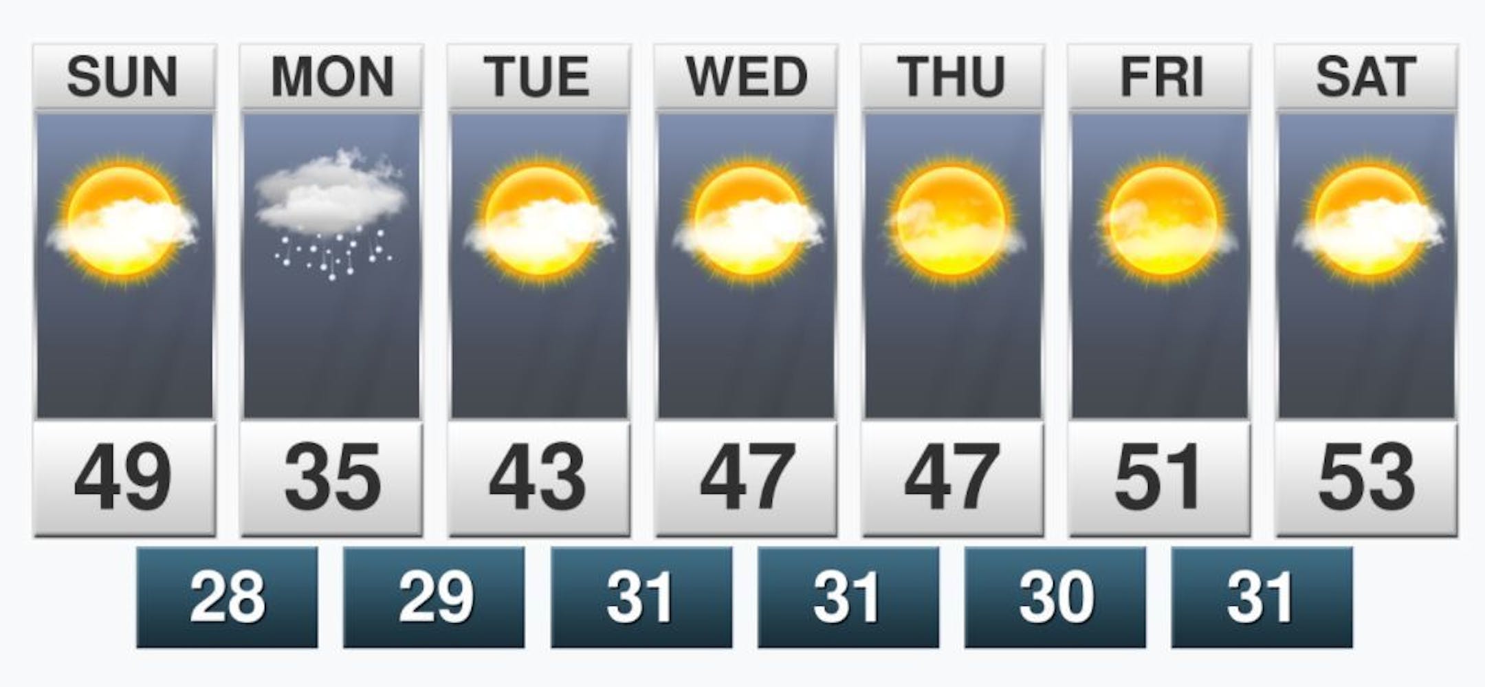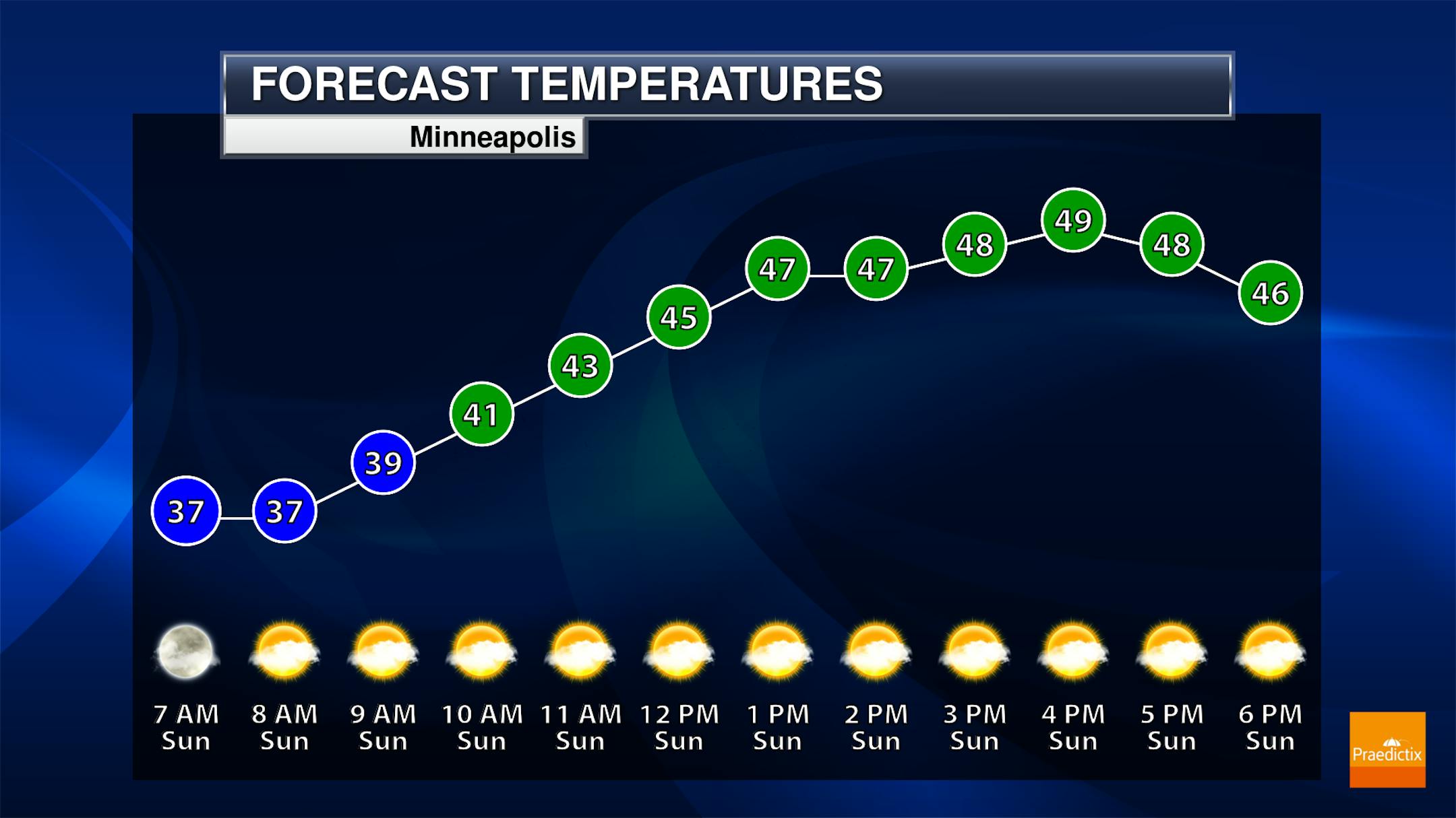 Temps on Sunday will warm through the 40s much of the day with highs approaching the upper 40s by the afternoon. Winds will also be a bit an issue gusts approaching 25mph out of the east.