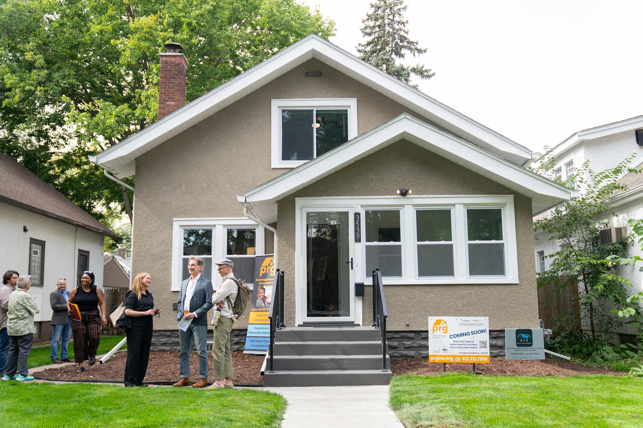 The gray house at 3539 Irving Av. N., one of the first of these properties to be fully rehabbed by nonprofit developer PRG, was the site of a celebratory news conference on Tuesday morning, where state and local officials bid HavenBrook Homes and its investment firm owner, Pretium Partners, goodbye.