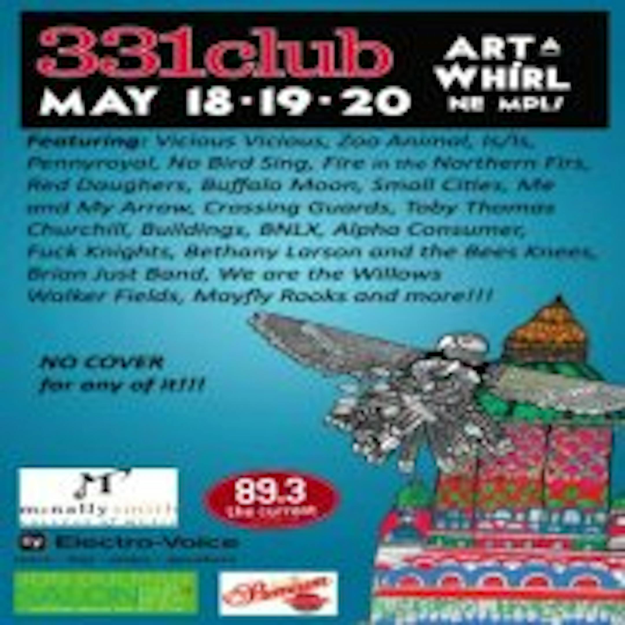 ART-A-WHIRL (MAY 18-20): As usual, the 331 Club is going hog-wild with its indoor/outdoor party during the Northeast Minneapolis art crawl. Its three-day lineup will include Vicious Vicious, Zoo Animal, Is/Is, All Tomorrow's Petty, the Goondas, Birthday Suits, Pennyroyal, No Bird Sing, Red Daughters, Buffalo Moon, Me and My Arrow, Crossing Guards, BNLX, Alpha Consumer, the F*** Knights and many more. Grumpy's NE is also hosting a big free bash on Saturday, May 19, with Gay Witch Abortion, Pink Mink, Seawhores, Nightosaur, Is/Is and more. As is always the case with this art-before-commerce event, we're still waiting to hear about some of the other planned events