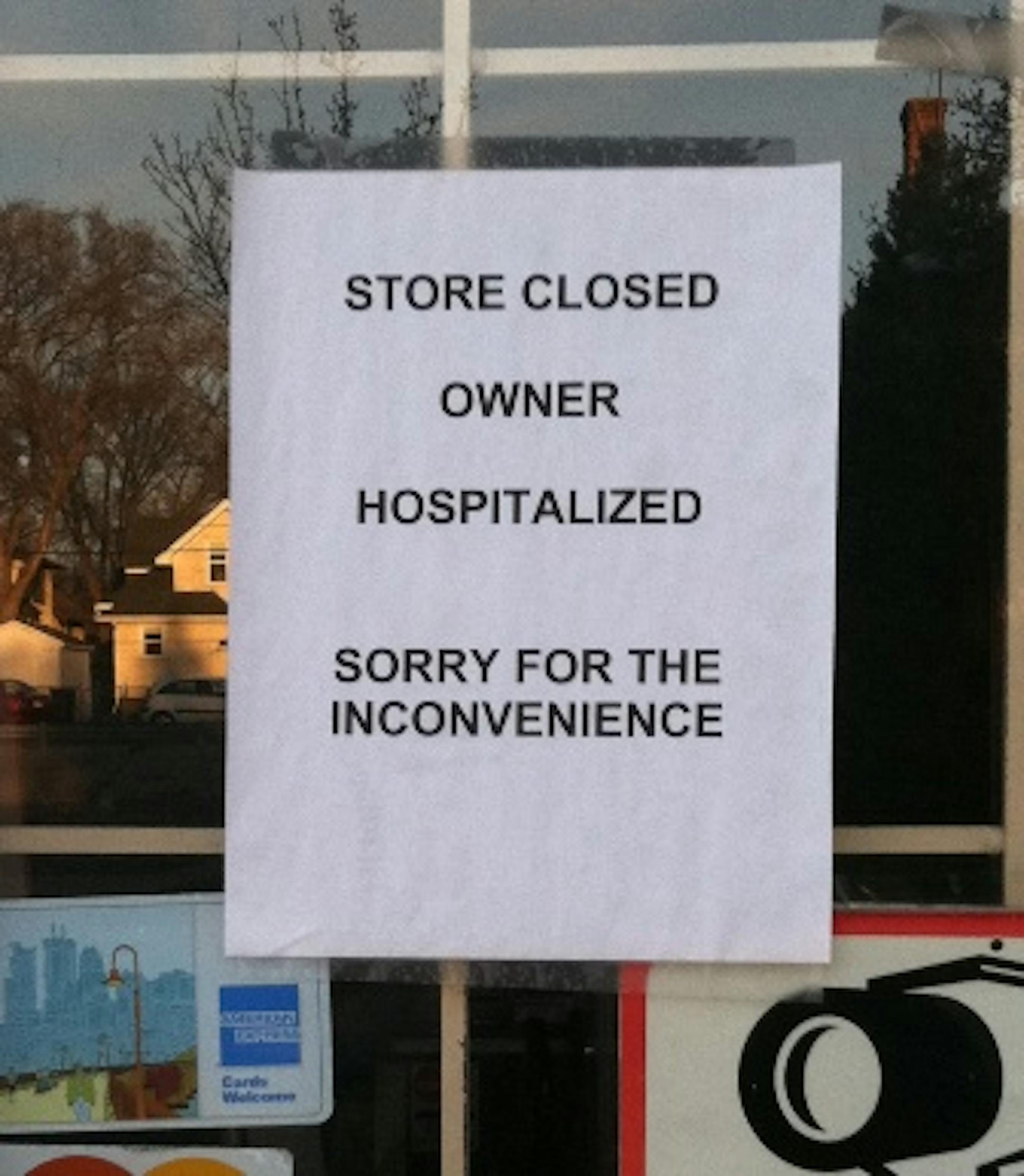 UPDATE: Whistleblower stopped by the business Thursday evening and saw this note on the door. It's the first explanation that's apparently been offered for the sudden closing of All Brands Vacuum on Chicago Avenue South in MInneapolis.