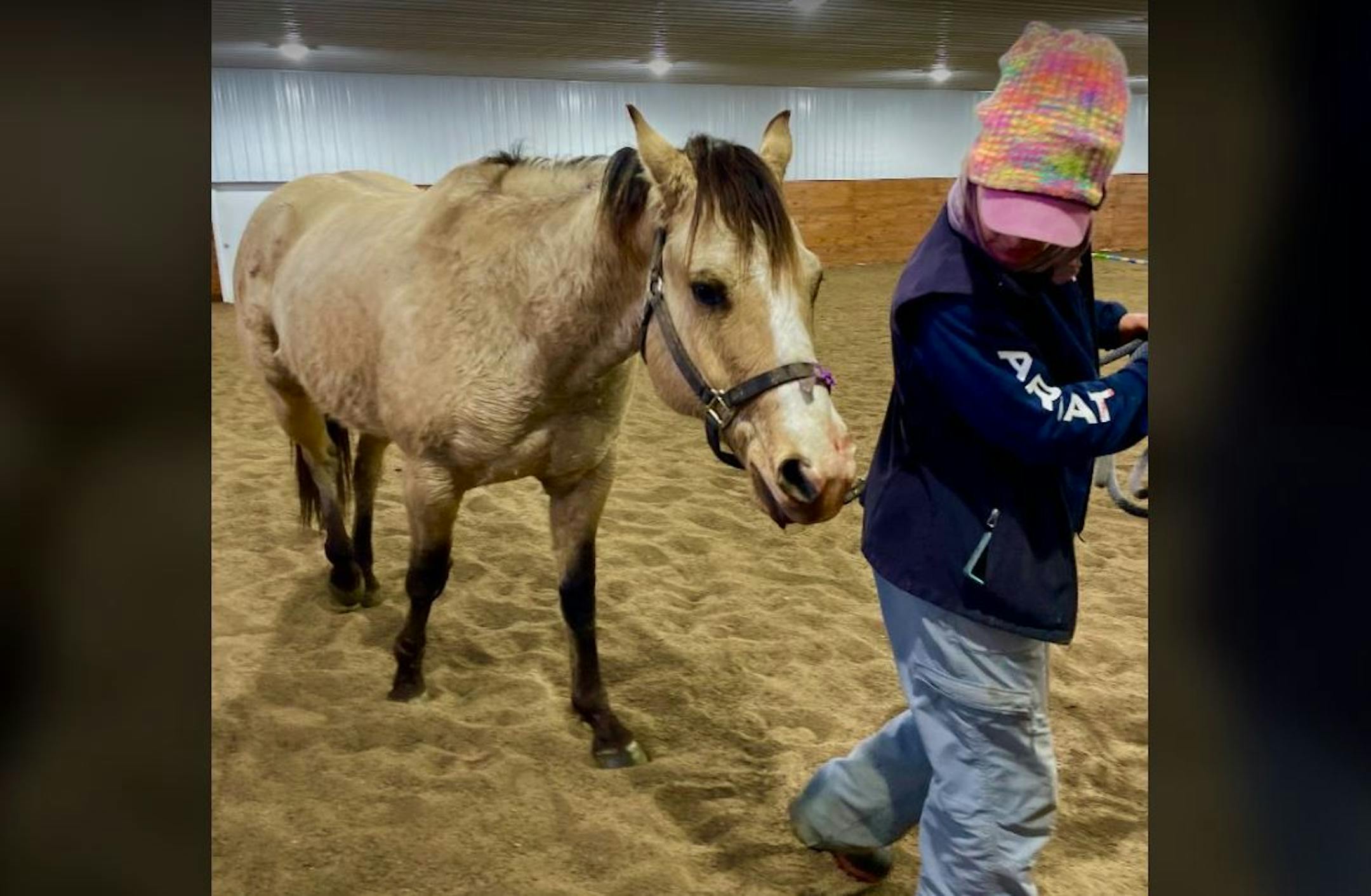 Longtime ranch owner Mary Soligny said 15-year-old King was brought into the stall from the pasture for some rest “and he unexpectedly and quickly attempted to leap through the small feed window of his stall. ... Horses sometimes do this. We don’t know why.”
