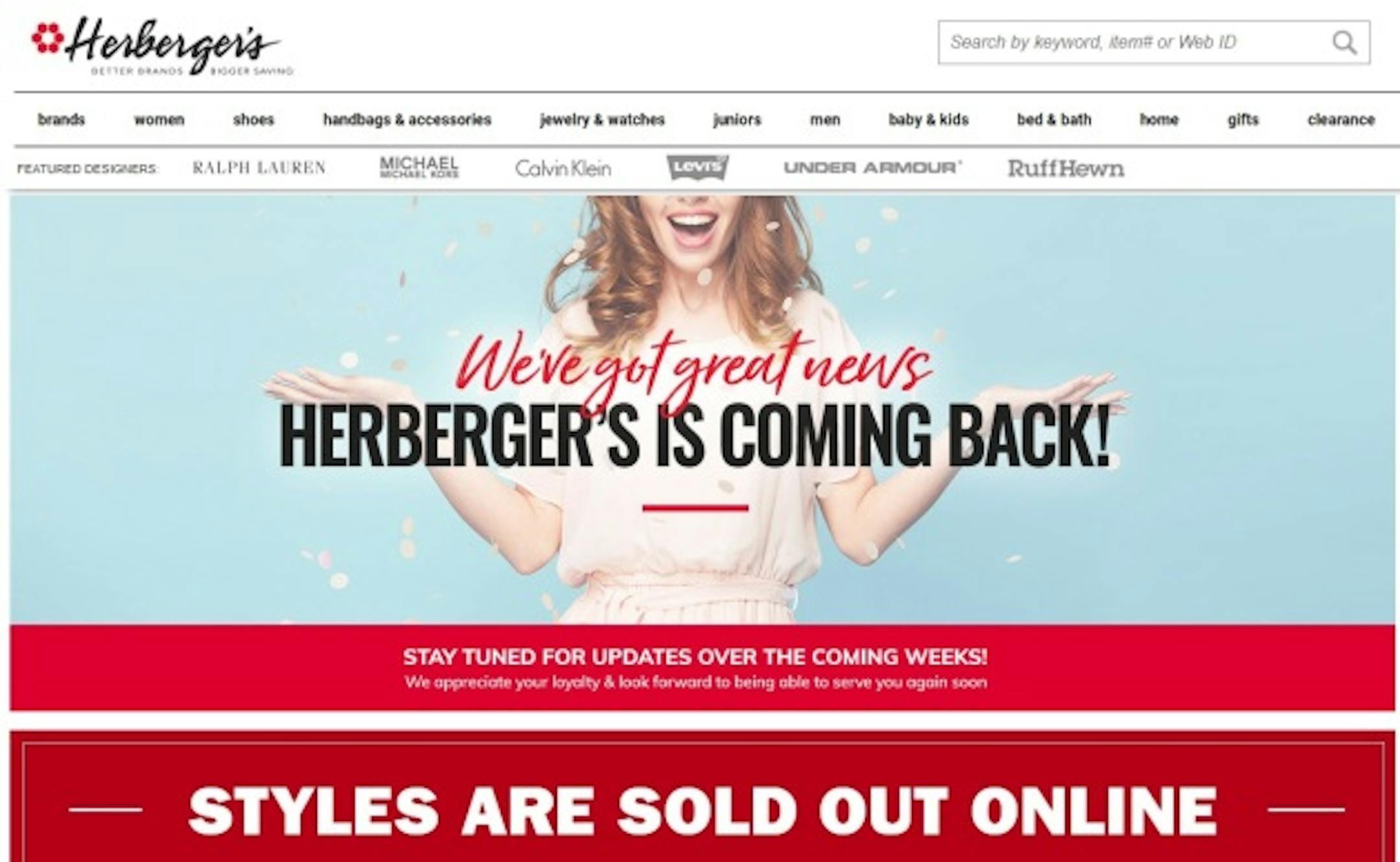 A surprise message appeared on Herbergers.com Friday: "We've got great news -- Herberger's is coming back!"