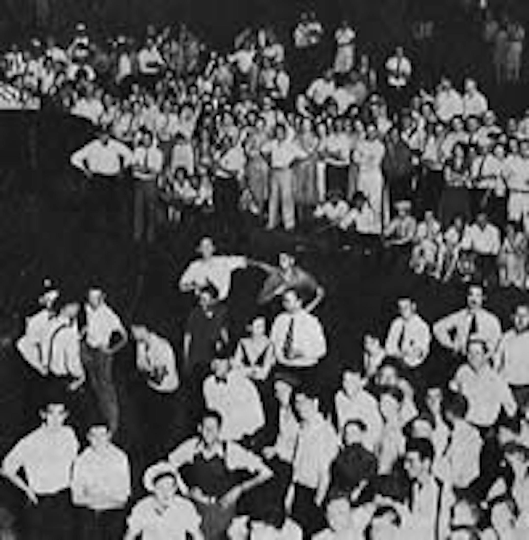 (Photo above: Part of the crowd of white homeowners who opposed the move of the Lees, a black couple, to their neighborhood in 1931)