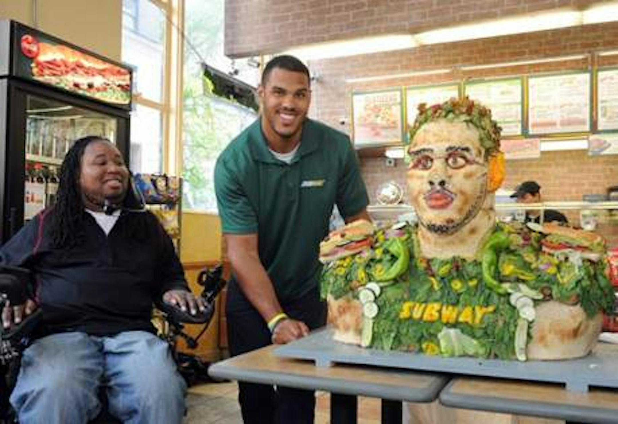 Anthony was introduced as the newest SUBWAY Famous Fan. A food statue was made in Barr's likeness completely out of vegetables! Eric LeGrand, former football player and SUBWAY Famous Fan, was on hand to help introduce Anthony and the SUBWAY food statue.