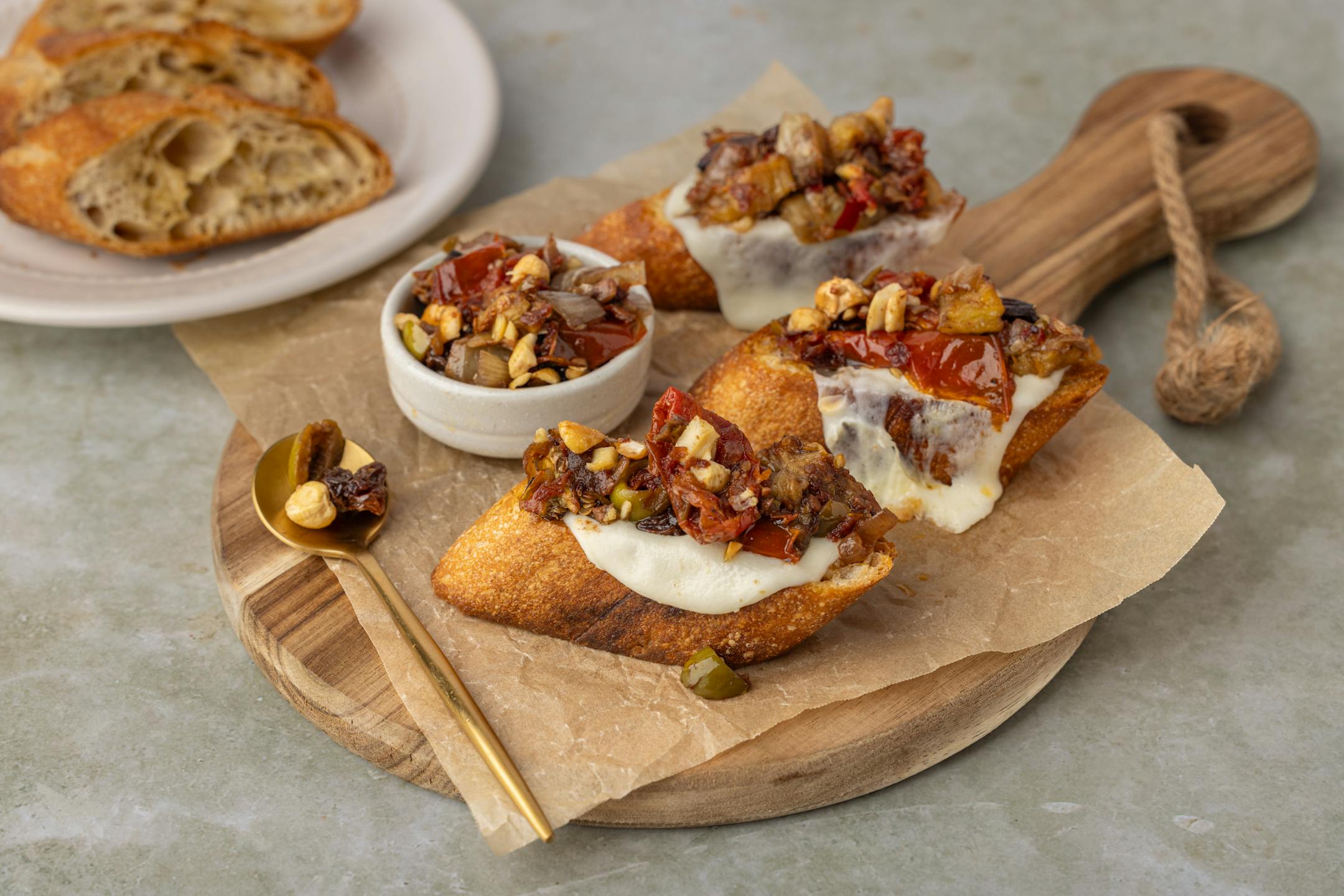 Eggplant’s neutral flavor and dense texture act like a sponge in this pungent Sicilian version of ratatouille. Make it a day or so ahead to allow all the components to marry. Serve it at room temperature on top of crostini layered with soft cheese (chèvre, cream cheese, mozzarella … whatever you please). From Beth Dooley.