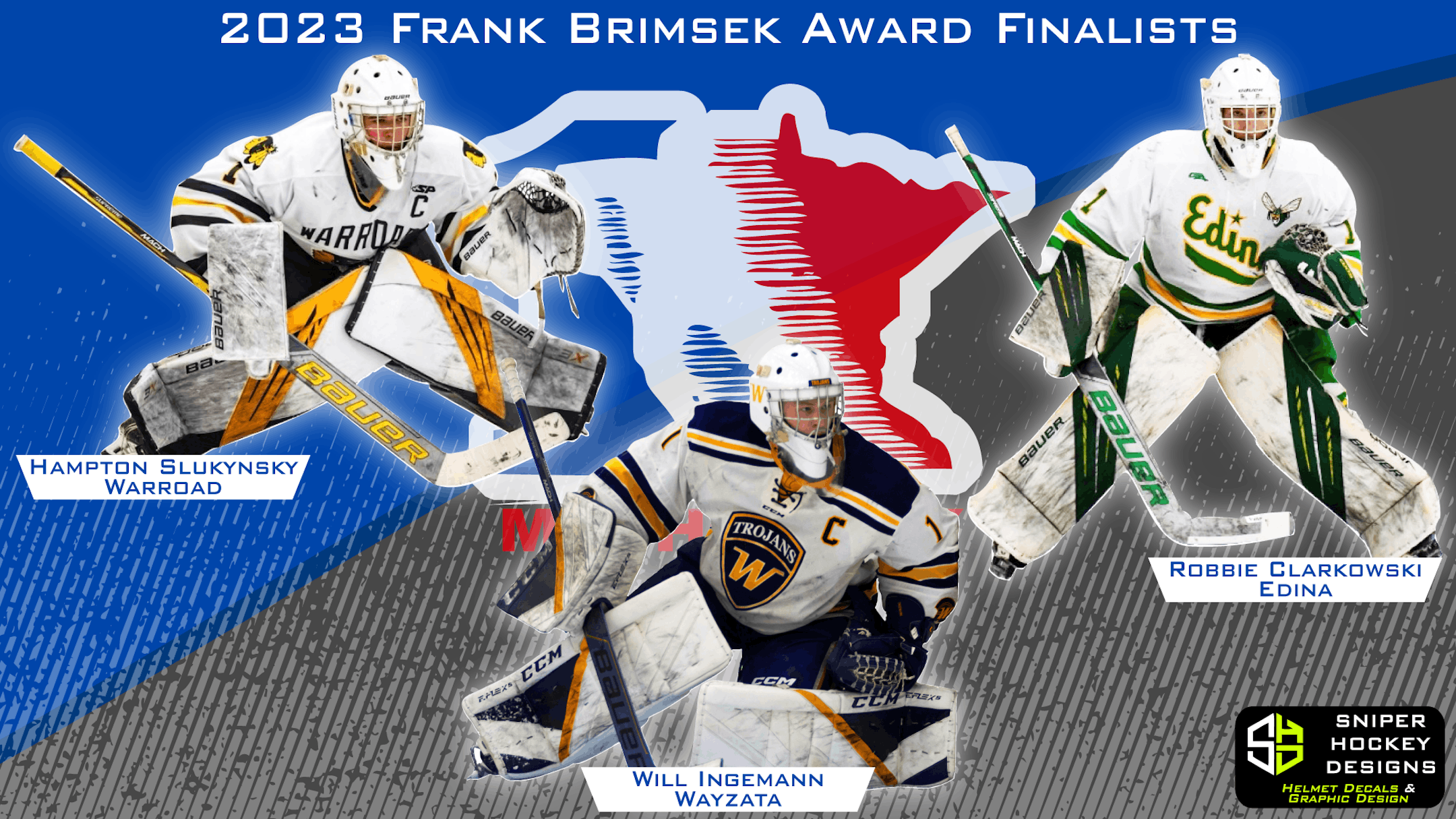 The Frank Brimsek Award will be bestowed on Robbie Clarkowski (Edina), Will Ingemann (Wayzata) or Hampton Slukynsky (Warroad).