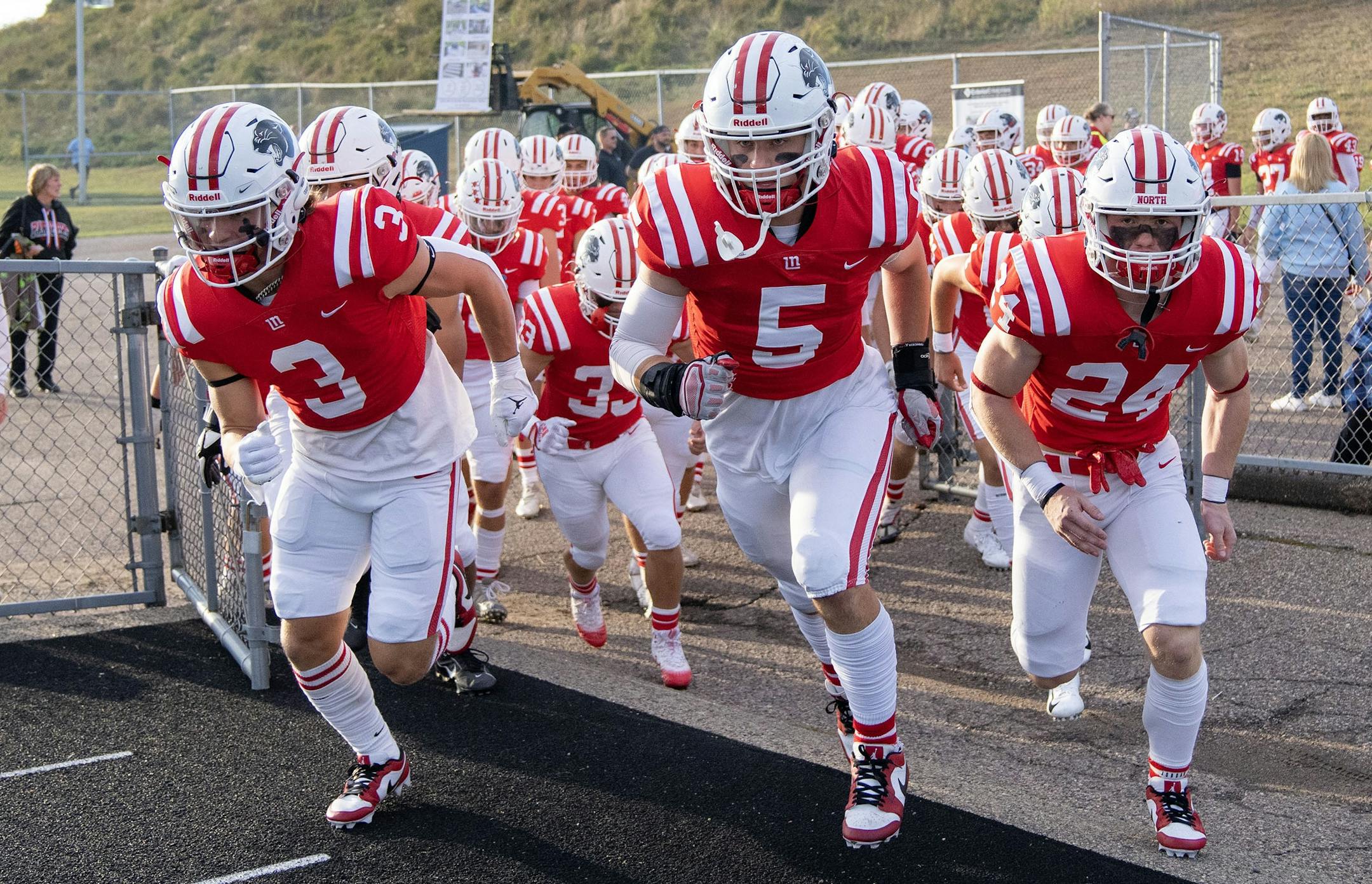 Jim says: Coon Rapids is a far better team than its record indicates. Four of its losses have come in one-score games, including an overtime loss to Farmington last week after leading by 15 in the fourth quarter. Lakeville North, No. 2 in the final Class 6A state rankings, is hitting its stride, averaging 50 points in its past three games. It won't be a walkover, but Lakeville North wins comfortably. The pick: Lakeville North 38, Coon Rapids 14